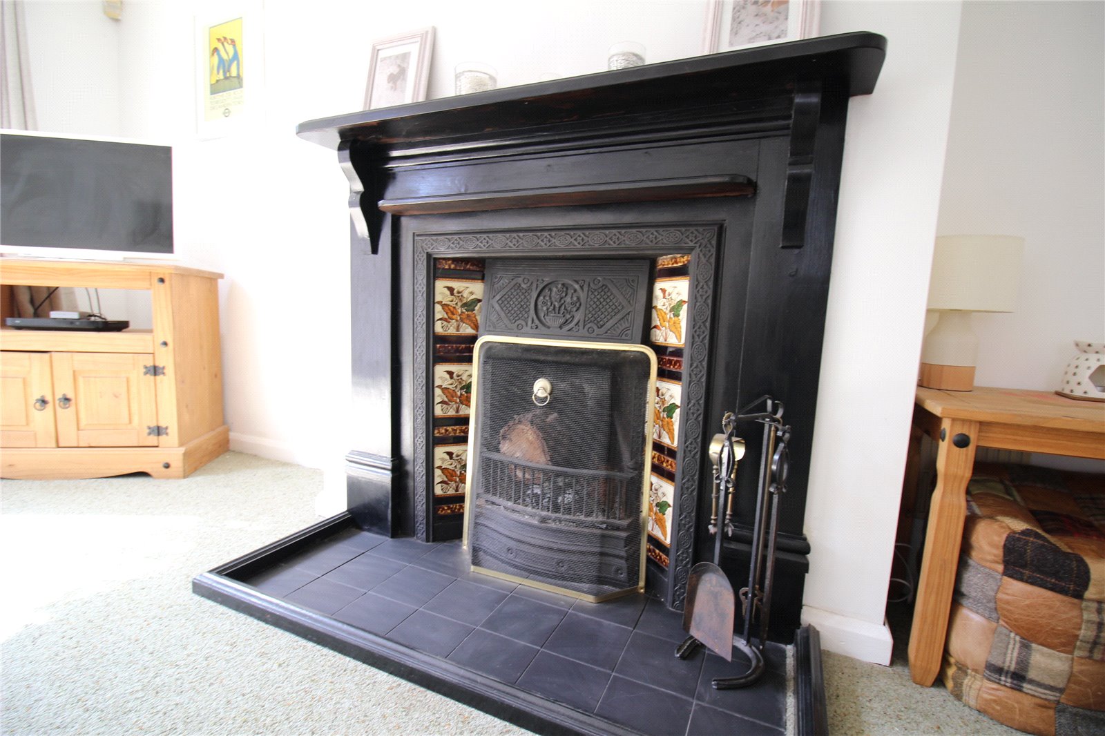 Lounge 16'3" x13'5" (4.95m x4.1m). A lovely room opening out onto the garden via French doors with windows either side. The focal point of the room is an open fireplace with feature surround and quarry tiled hearth, window looking through to dining room.