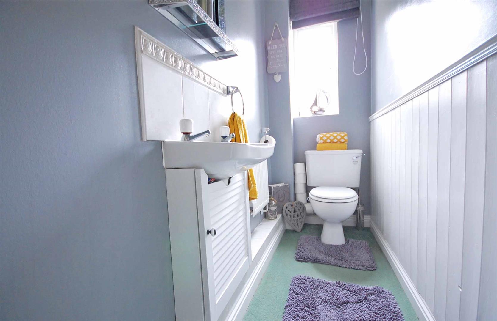 Cloakroom: - Opaque double glazed window to rear aspect, low level WC, inset wash hand basin, radiator, carpeted flooring and textured ceiling.