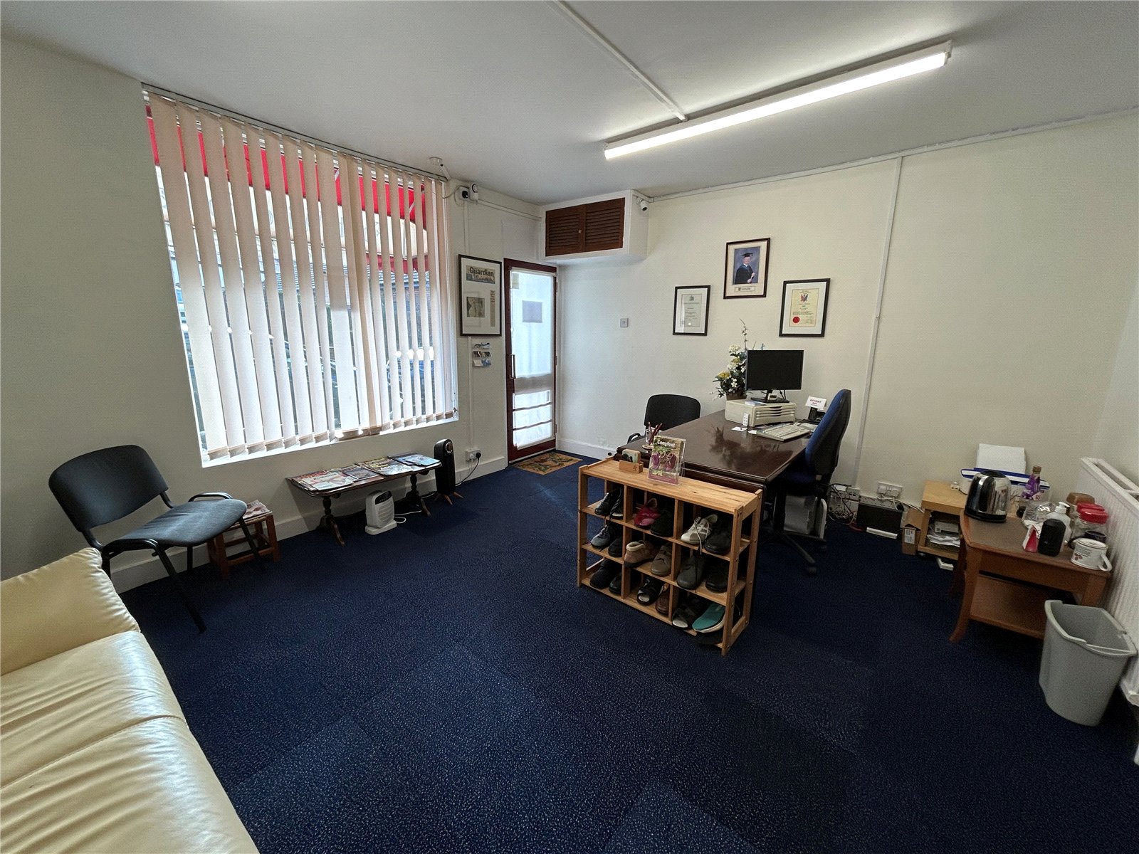 Shop Front 14'10" x 13' (4.52m x 3.96m). Entered from street level via wood and glazed door into reception area. Window to front aspect, double panel radiator, door into: