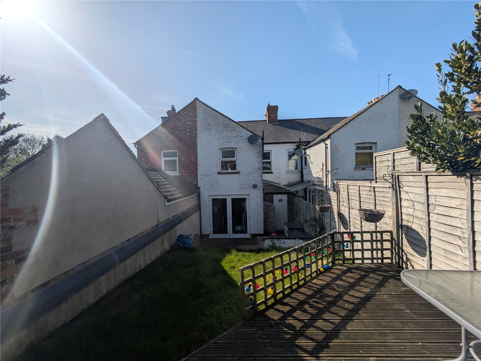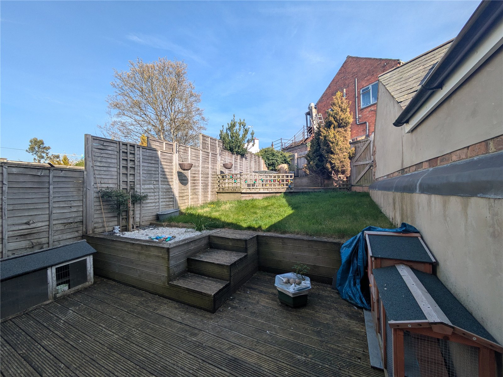 Rear A low maintenance rear garden accessed from the kitchen onto wooden decking area, access to timber lean-to/storage area to the side of the property, raised wooden gravelled flower bed and steps up to lawned area giving access to further wooden decked area with half height trellis around the edge. Wooden gate for pedestrian access to the rear walkway and the garden is enclosed by timber fencing on two sides and the wall of the neighbouring property to third side