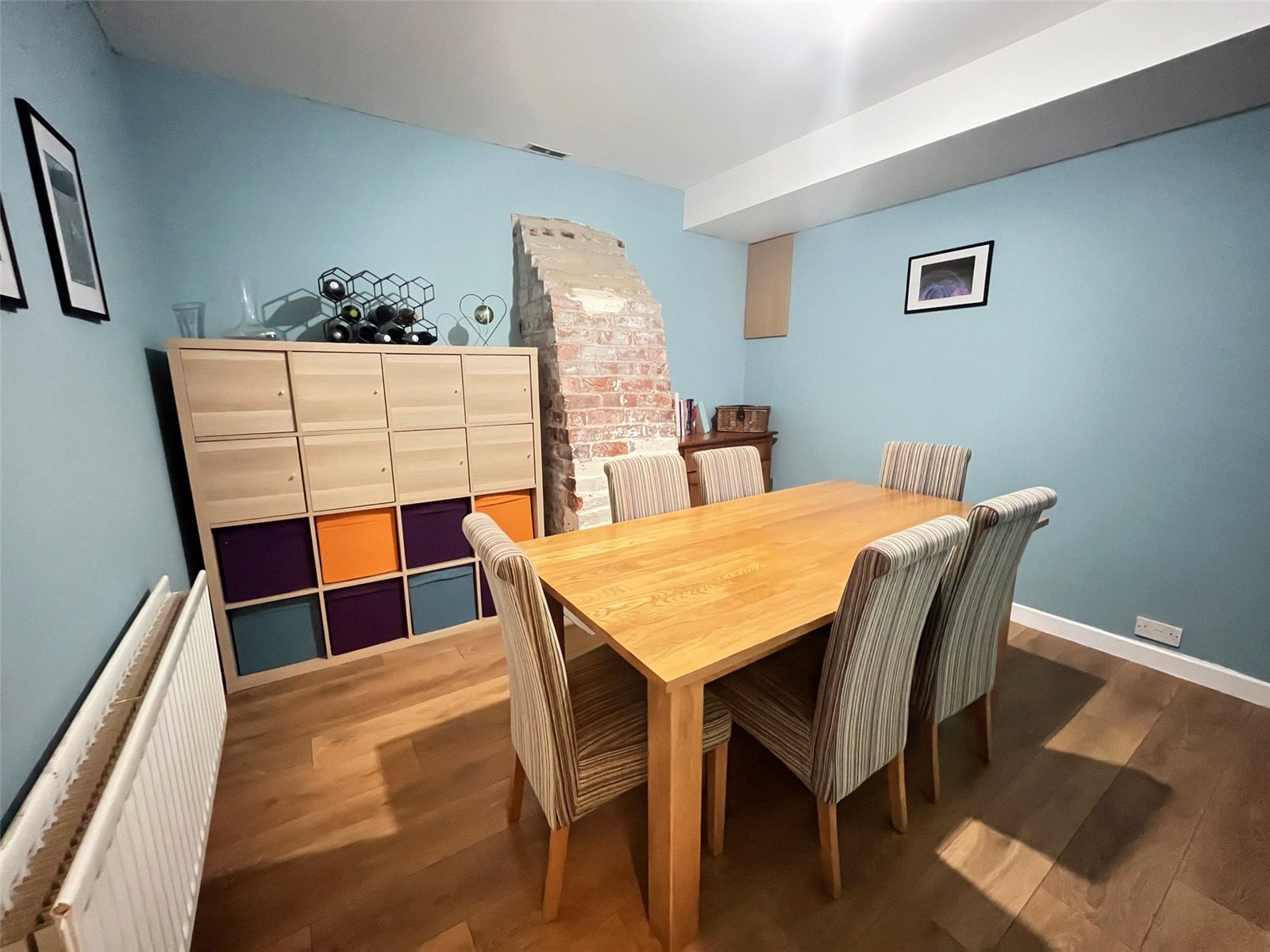 Kitchen 12' x 11' (3.66m x 3.35m). Fitted with a range of eye and base level units with rolled edge worksurfaces over, space for Range style cooker with extractor hood over, stainless steel sink and drainer unit with mixer tap over, space and plumbing for washing machine and dishwasher, breakfast bar with storage cupboards under, wall mounted central heating boiler, tiling to water sensitive areas, feature exposed brick work, radiator, ceramic tiled floor, part Upvc double glazed stable style door to rear garden, Upvc double glazed window to rear aspect, recessed housing space for full height fridge/freezer, door way to :-