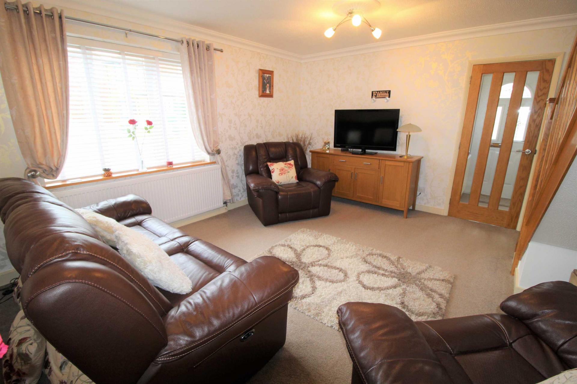 Lounge 14'11" x 13'10" max (4.55m x 4.22m max). Upvc double glazed window to front aspect with double panel radiator under, coving to ceiling, oak staircase rising to first floor, oak glazed door into kitchen/breakfast room.
