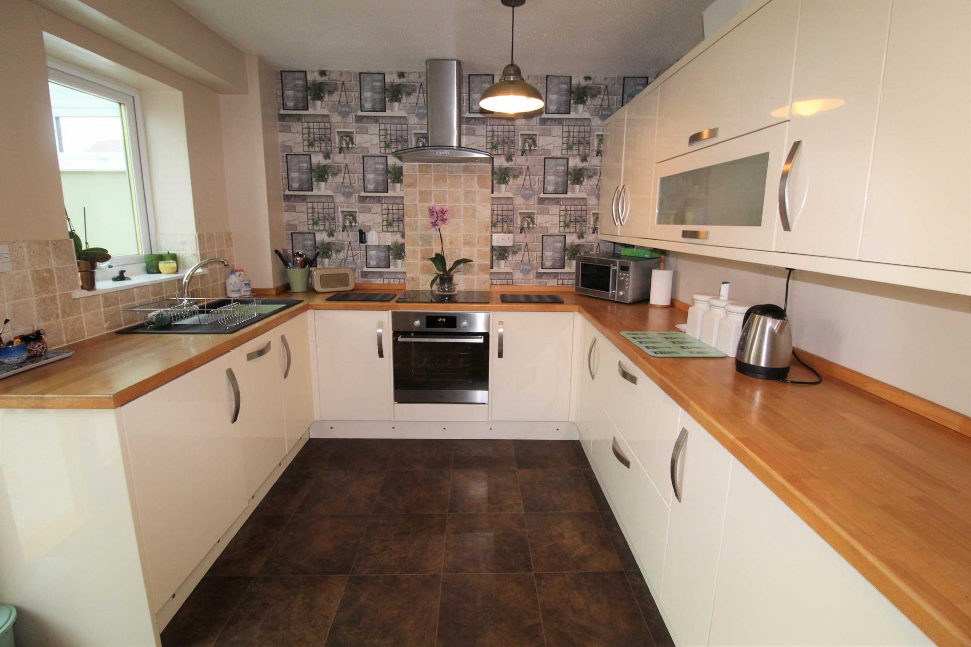 Kitchen/Breakfast Room 14'11" x 9'4" (4.55m x 2.84m). Fitted with a range of high gloss eye level and base units with solid wood work surface over and up stands, composite sink unit and drainer with mixer tap over, integrated appliances to include electric oven and hob with stainless steel extractor canopy hood over, fridge, freezer, washing machine and dishwasher. Single panel radiator, wall mounted gas fired Worcester boiler, upvc double glazed window to rear aspect, oak bi-fold doors into sunroom.