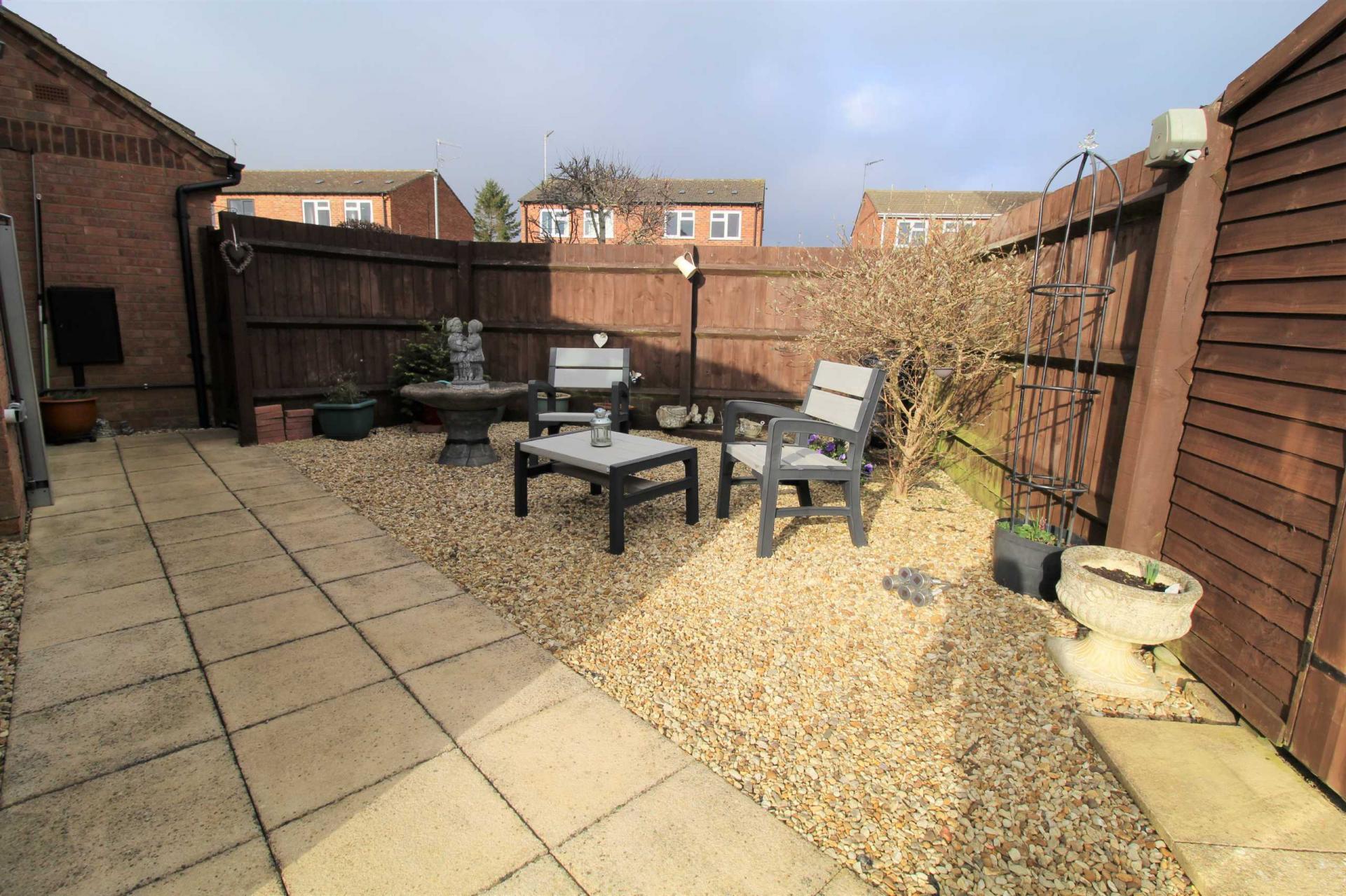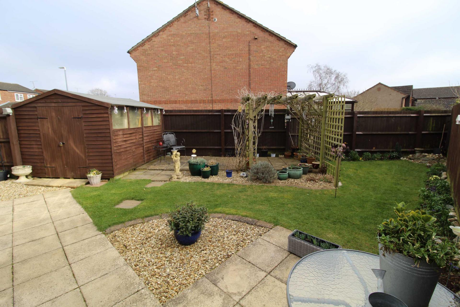 Rear A lovely garden with paved area adjacent to property. A lawned area with planted borders, a further paved area with pagoda and large timber shed. To the side is a pretty gravelled area for seating.