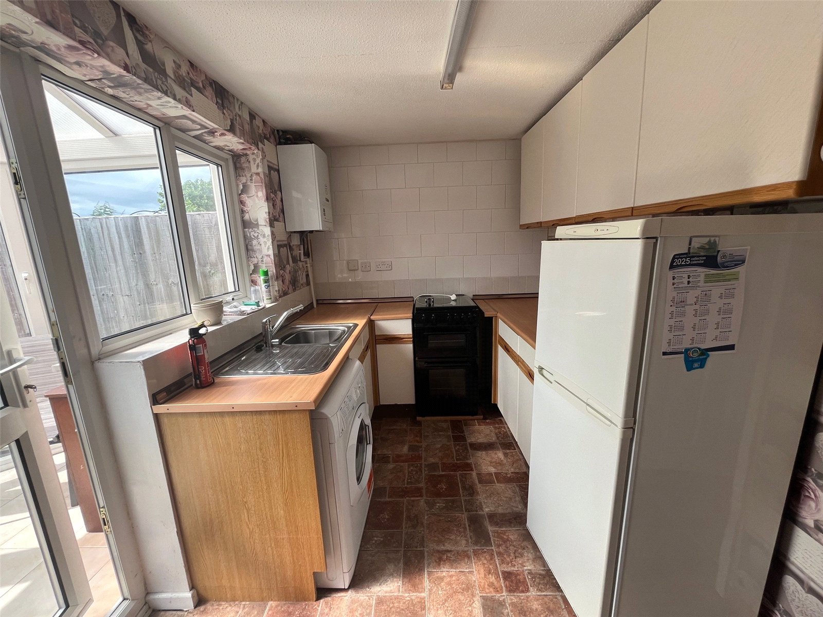 Kitchen/Diner 12'2" x 7'2" (3.7m x 2.18m). Fitted with a range of eye and base level units with rolled edge work surfaces over, space for gas cooker, stainless steel sink and drainer unit with mixer tap over, wall mounted central heating boiler, space for upright fridge/freezer, space and plumbing for washing machine, tiling to water sensitive areas, radiator, opaque double glazed window to conservatory, part Upvc double glazed door opening into conservatory