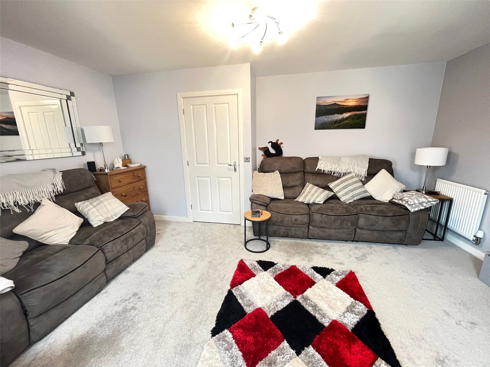 First Floor Landing 6'6" x 6'6" (1.98m x 1.98m). Access to loft space which is part boarded and with drop down ladder. Airing cupboard housing hot water tank and slatted linen shelving, radiator, doors to all first floor accommodation