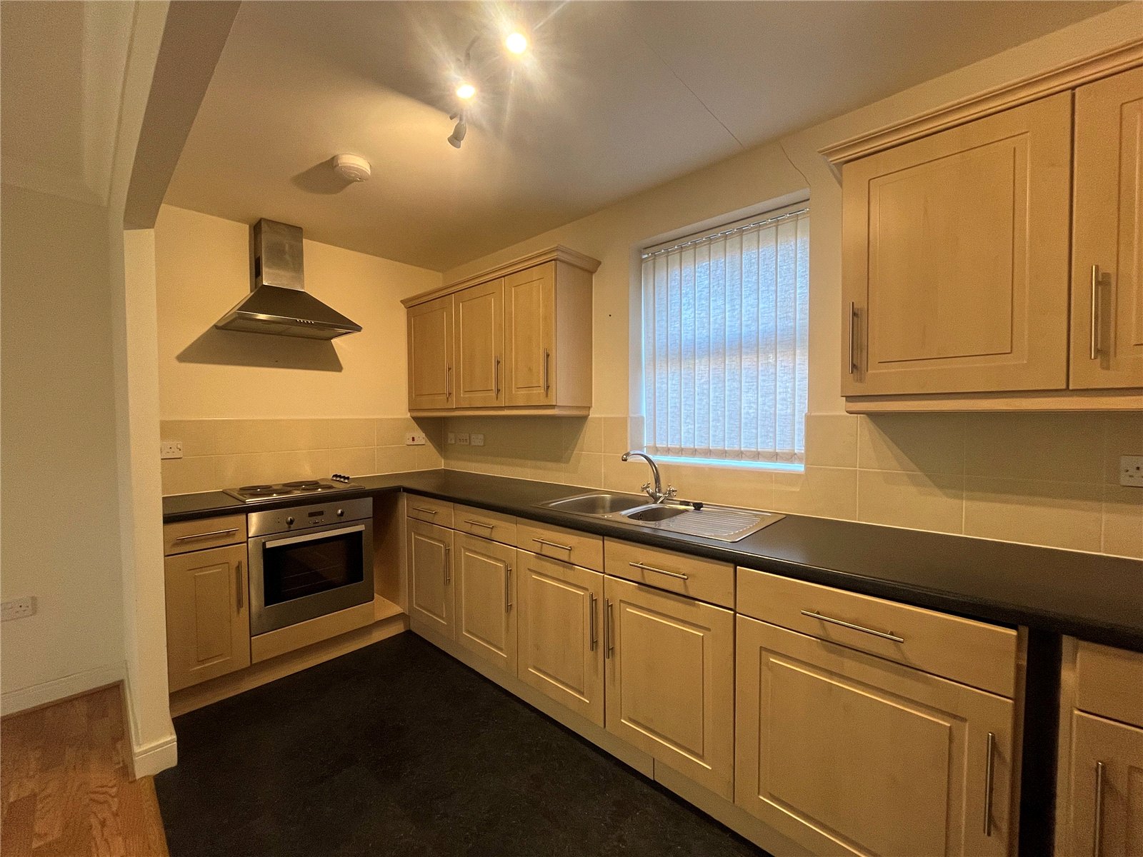 Kitchen 14'6" x 5'8" (4.42m x 1.73m). Fitted with a range of both eye and drawer line base level beech effect units with rolled edge work surfaces over and tiling above, inset stainless steel one and a half bowl single drainer sink unit with mixer tap over, built in washing machine, space for full height fridge freezer, integrated electric oven and hob with stainless steel extractor fan over, vinyl flooring.