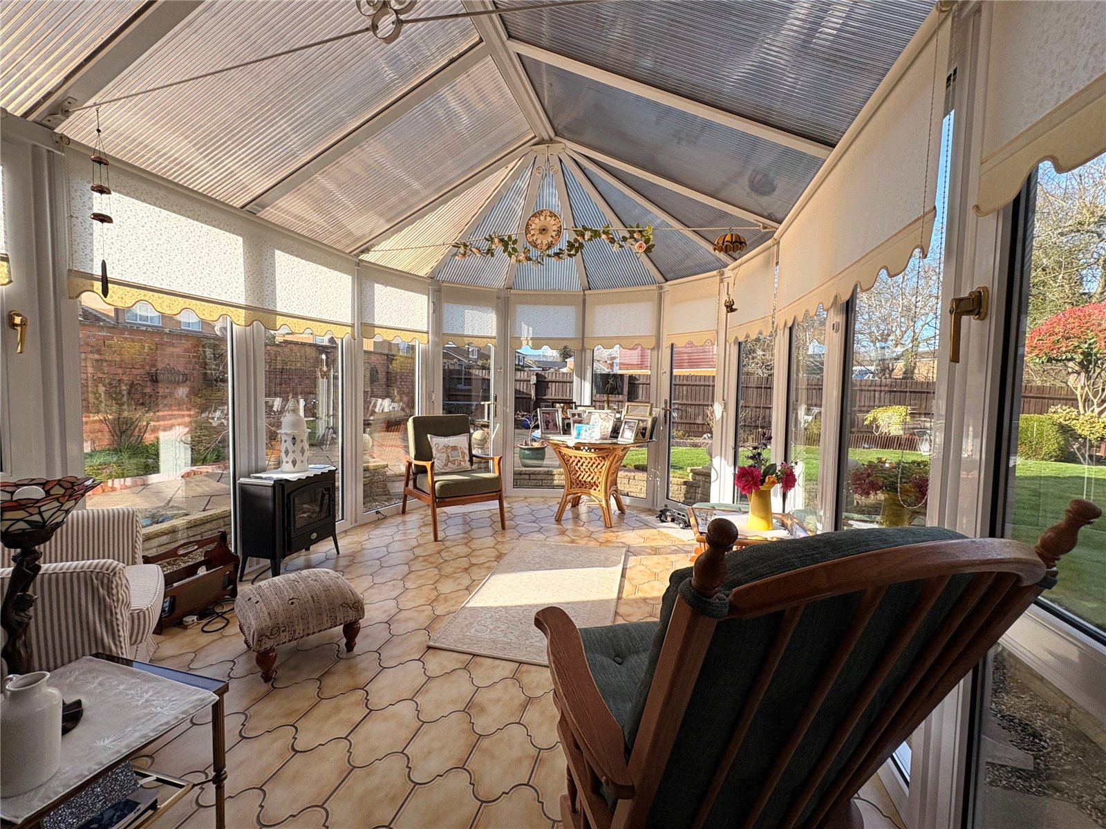 Conservatory 14' x 9'9" (4.27m x 2.97m). A useful addiiton to the ground floor of the property giving a lovely outlook of the rear garden and of Upvc double glazed construction with poly carbonate pitched roof, two fully opening windows and two doors giving access to the rear garden, tiled flooring