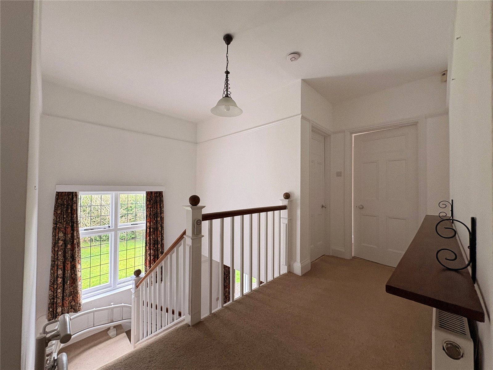 Landing 14'5" x 12'11" (4.4m x 3.94m). A large part galleried landing with white spindle balustrades and contrasting oak hand rail to the top of the stairs, picture rail, deep Torus skirting, single panel radiator, smoke alarm, white panel doors to first floor accommodation