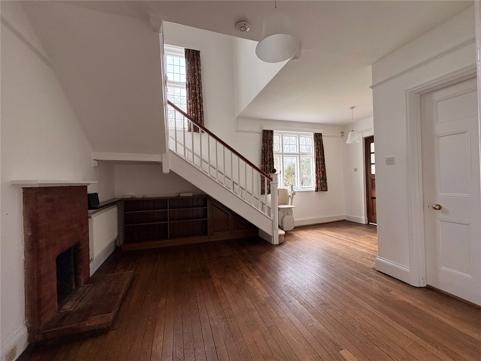 Entrance Hall/Reception 18'3" x 16'6" Max (5.56m x 5.03m Max). An impressive and vast entrance hall/reception with original features to include picture rail, deep torus skirting boards and solid oak flooring, stairs rising to first floor landing with wooden spindle balustrades and contrasting oak hand rail and with a leaded window on the part landing to side aspect. An original fireplace with brick hearth and backing with inset cast fire sits to one wall. Thermostat control panel, alarm control panel, smoke alarm, window to side aspect, white panel doors give access to ground floor accommodation