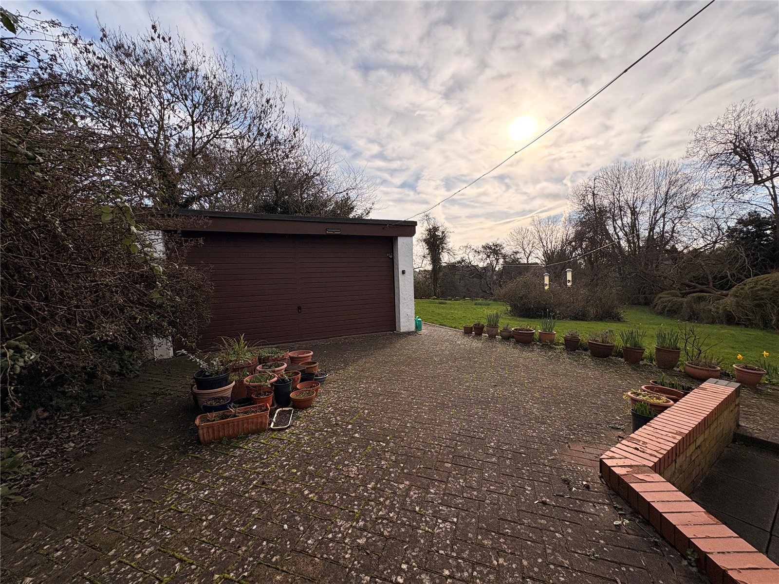Double Garage    A brick built double garage with metal up and over door with glazed windows.