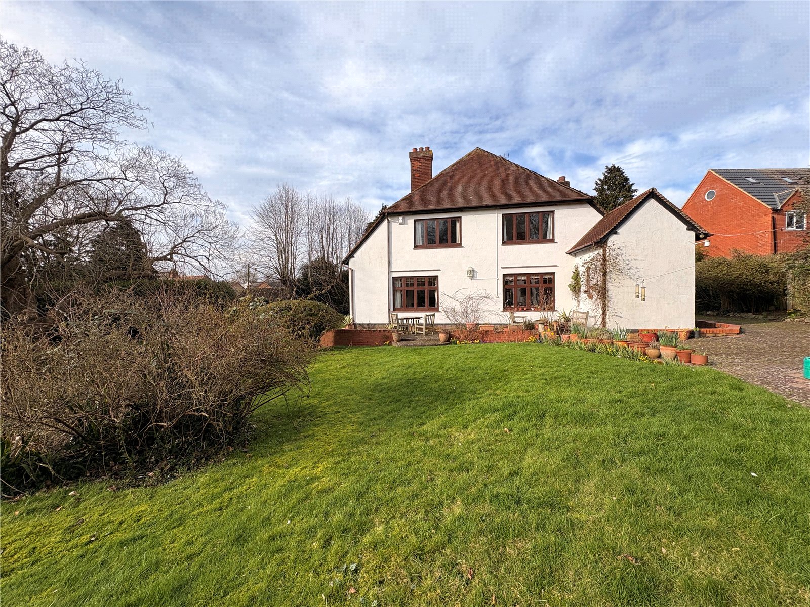 Outside    'The Limes' is situated on a warp around extensive plot of approximately one acre. Accessed from 'Brockhall Road' via twin opening wrought iron gates onto an extensive driveway which leads to the front of the property and along one side which in turn leads to the garage. The garden is predominantly laid to extensive lawn, with a variety of planted trees and shrubs, with a vegetable plot to one end and a pretty pond to the other. The garden has a lovely mature feel to it and offers a high degree of privacy, with paved pathways and patios with a greenhouse situated behind the garage area with paved surround.