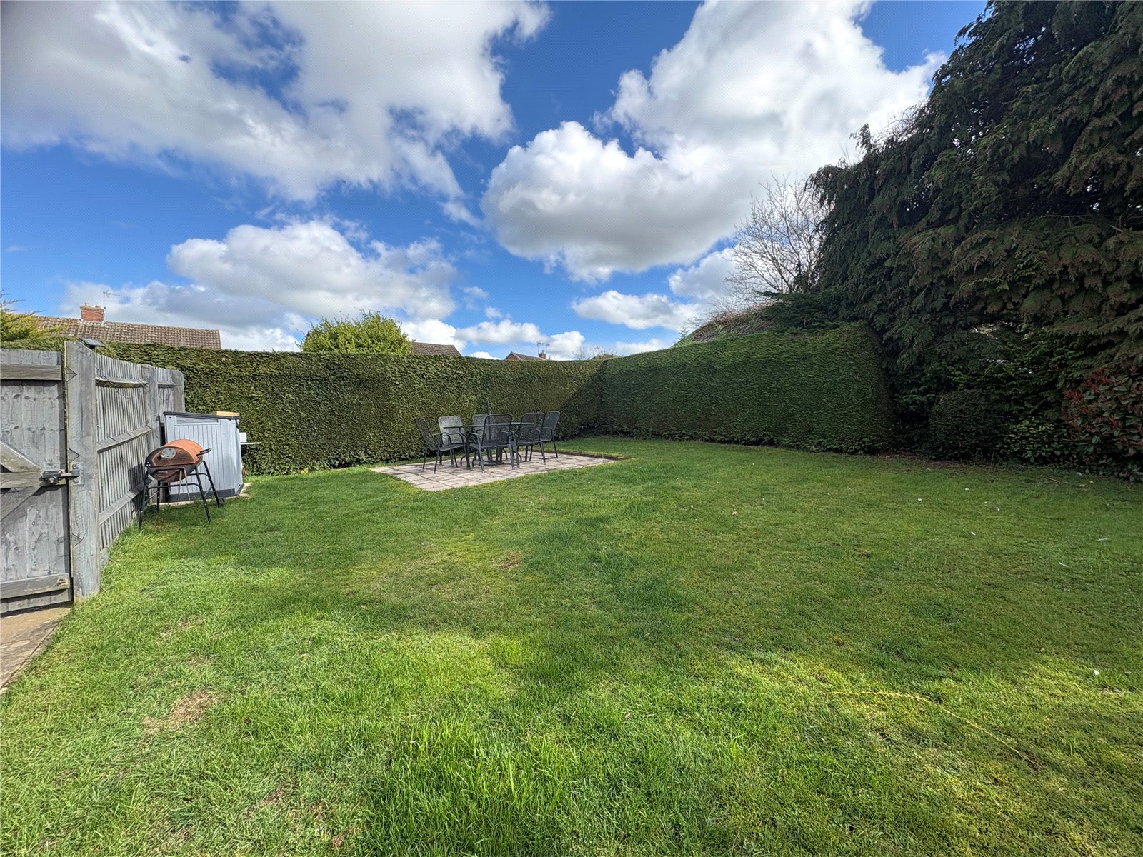 Rear Again a very good size garden which is mainly laid to lawn. A block paved patio runs behind the house and a slabbed pathway leads up the garden and in turn to the garage. A further slabbed patio area adjoins the garage. The garden offers a very mature feel and is enclosed by mature hedges, planted flower borders, outside lights
