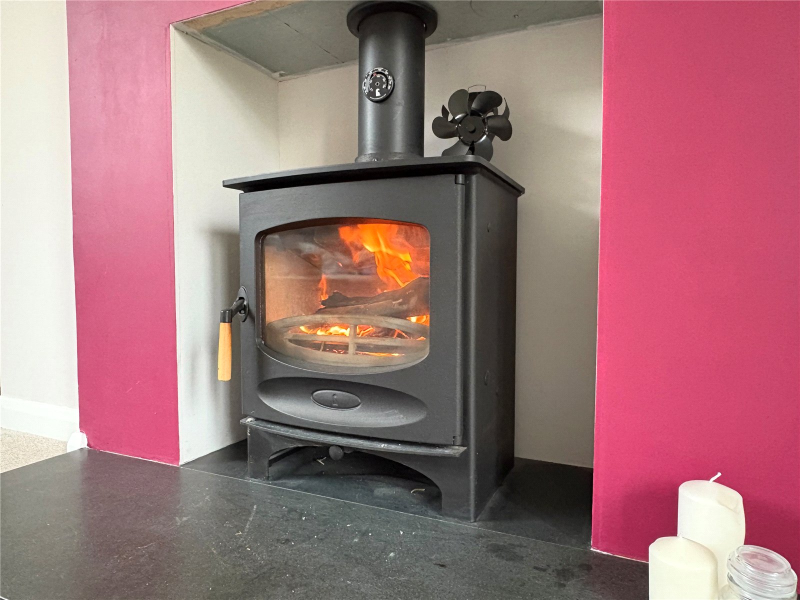 Lounge 14'10" x 13' (4.52m x 3.96m). A lovely dual aspect room with the focal point being a feature fire place with inset log burner set onto a granite hearth. The room is given additional character with Upvc double glazed double opening doors to front aspect, Upvc double glazed window to rear aspect, double panel radiator, single panel radiator, coving to ceiling, door to : -