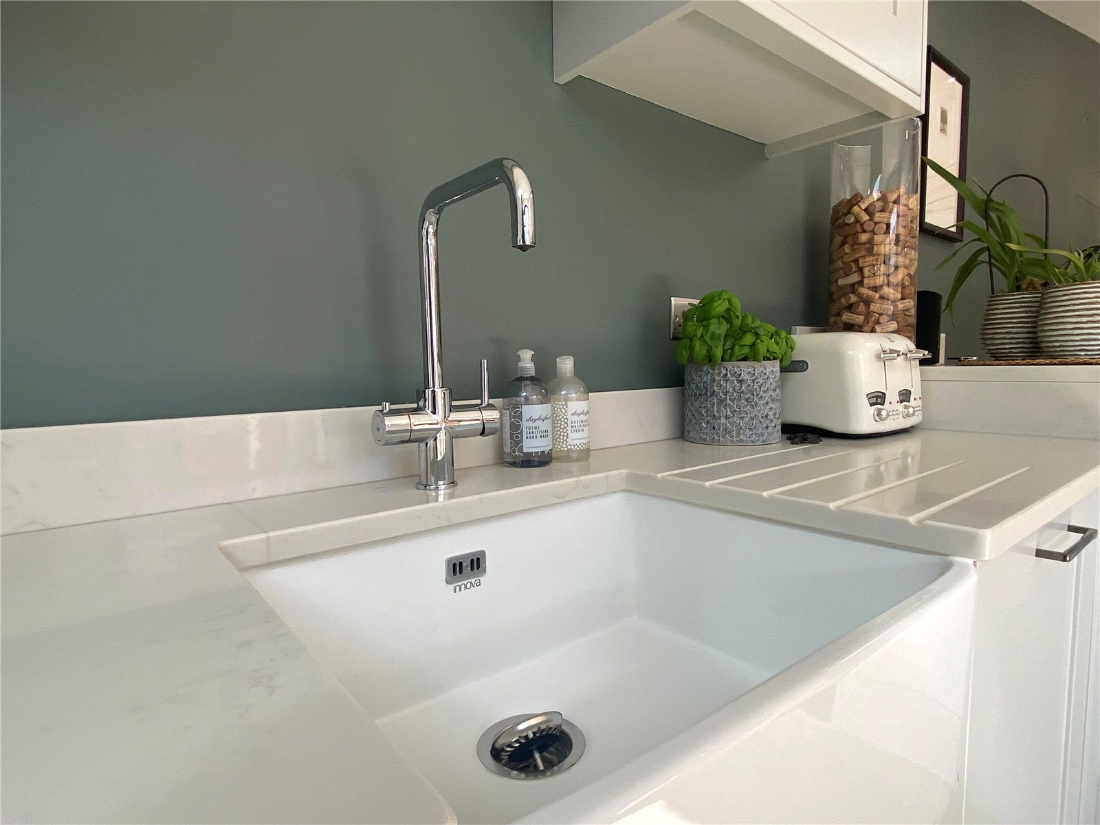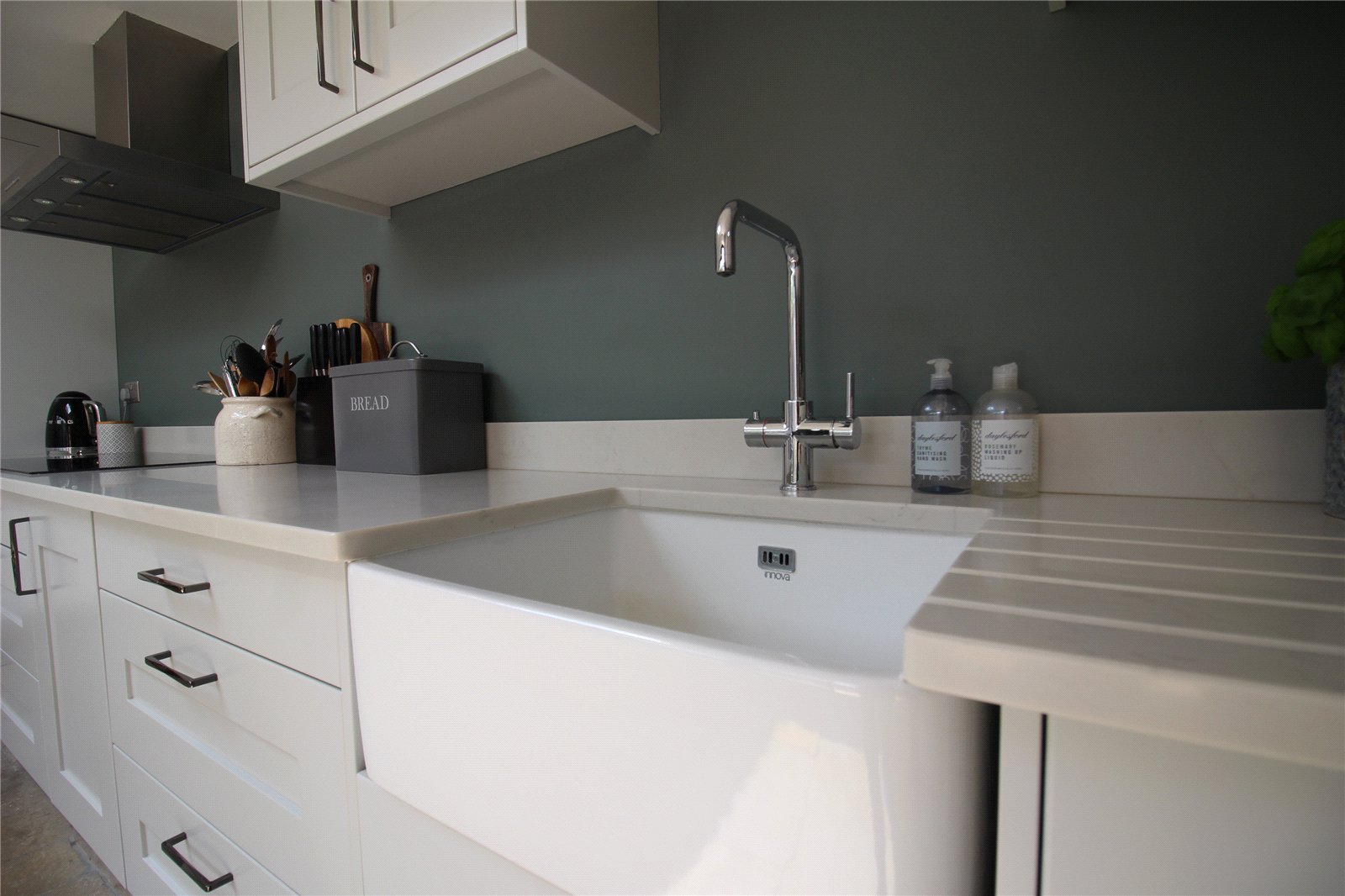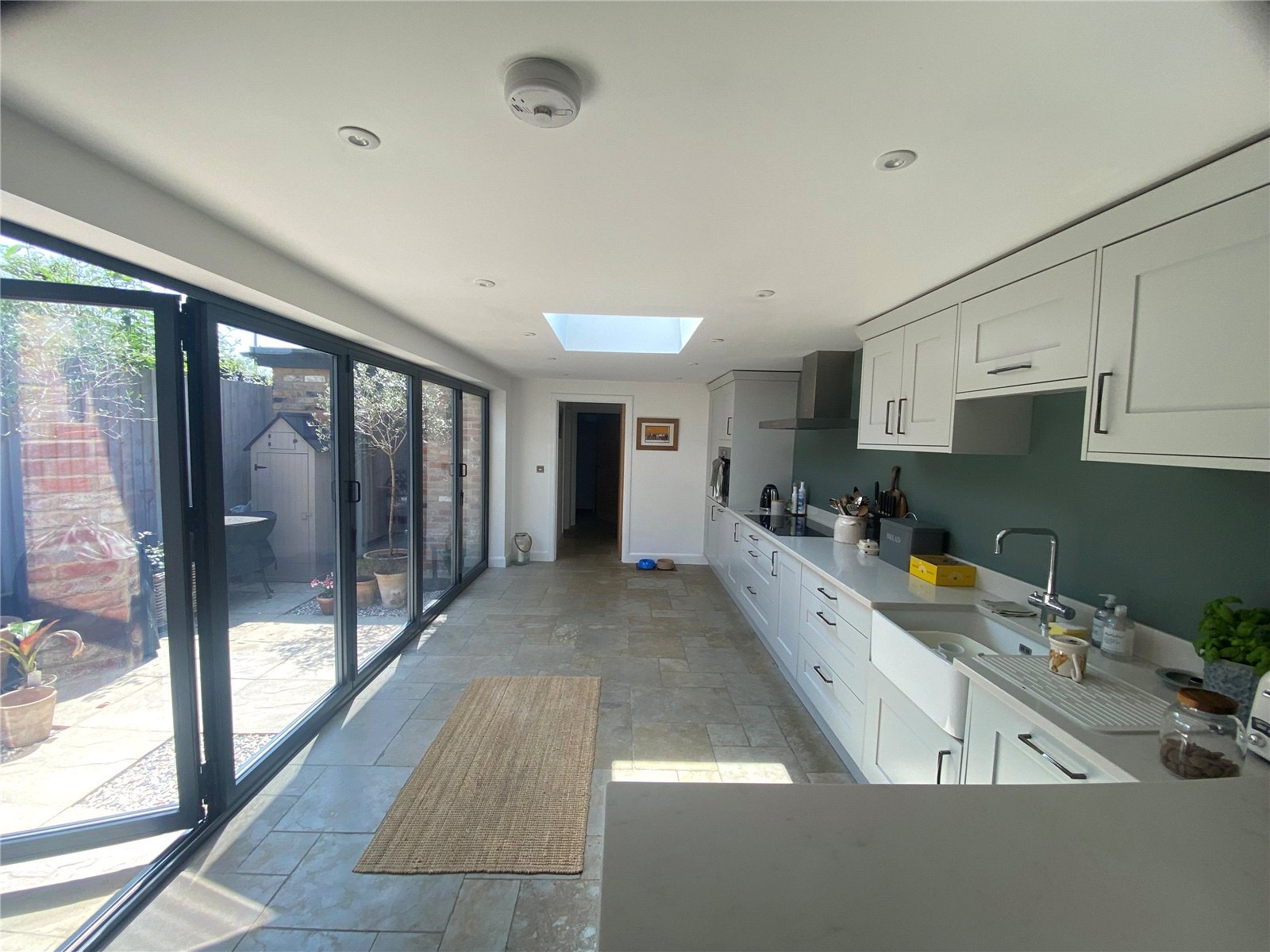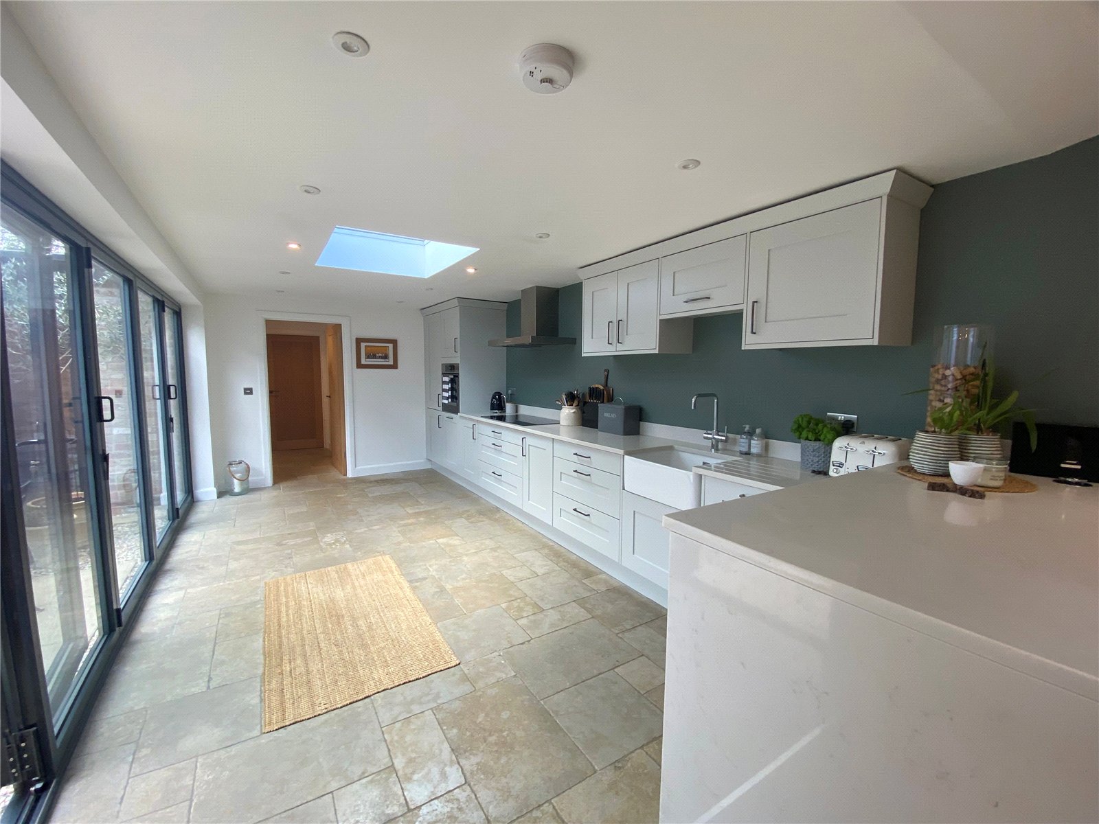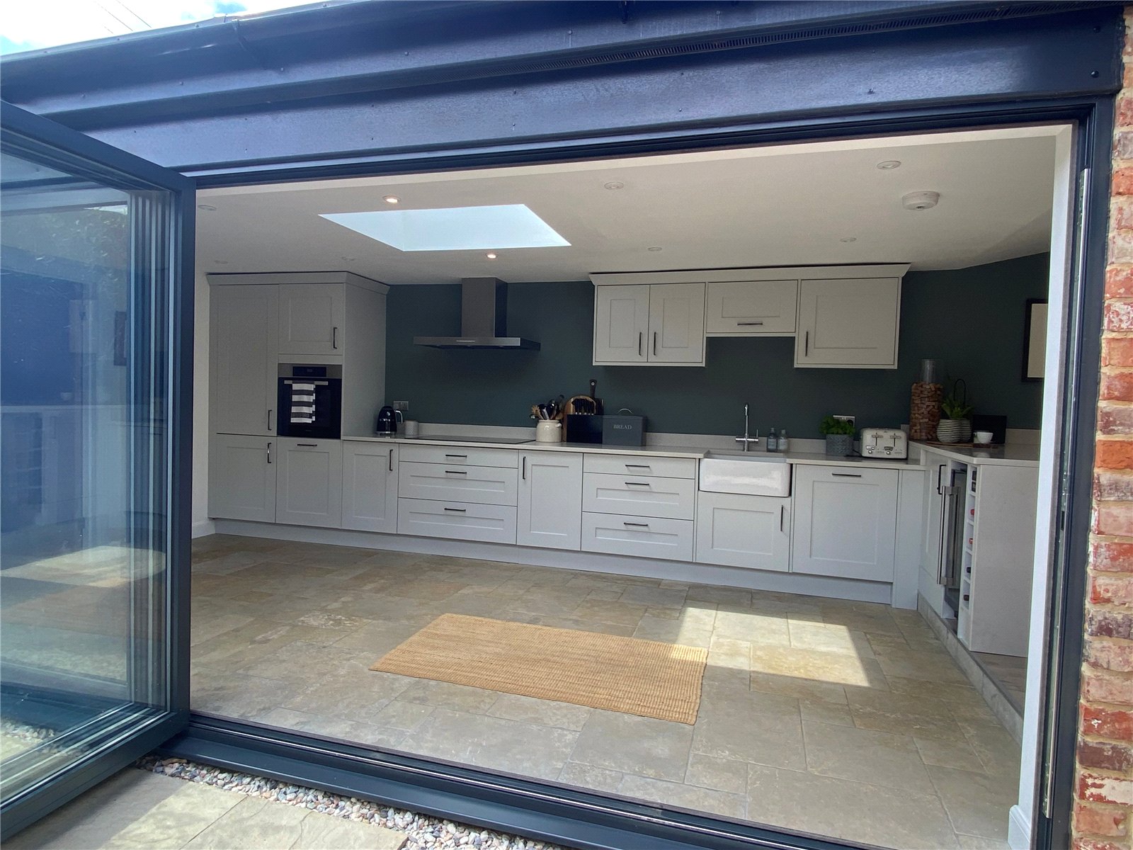 Kitchen 18'9" x 9'9" (5.72m x 2.97m). A truly superb room which has double glazed bi-fold doors running the full length of one side. The whole room is further enhanced with a central Velux roof lantern. The kitchen is fitted with an ample range of both base and eye level units running the full length of the room plus the addition of a breakfast bar opening into the dining area, within the kitchen is a Miele induction hob with stainless steel Miele extractor fan over, built in stainless steel eye level Miele oven, built in fridge and freezer, built in dishwasher, wine cooler and inset Innova Belfast style sink with instant hot water mixer tap over, inset LED downlighters, tiled floor with underfloor heating, oak door to inner hallway.