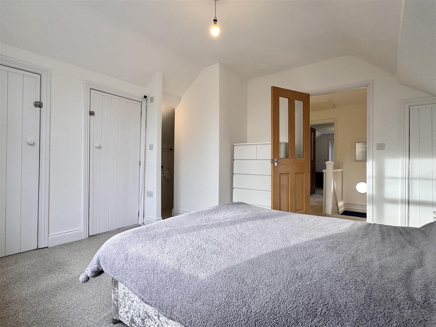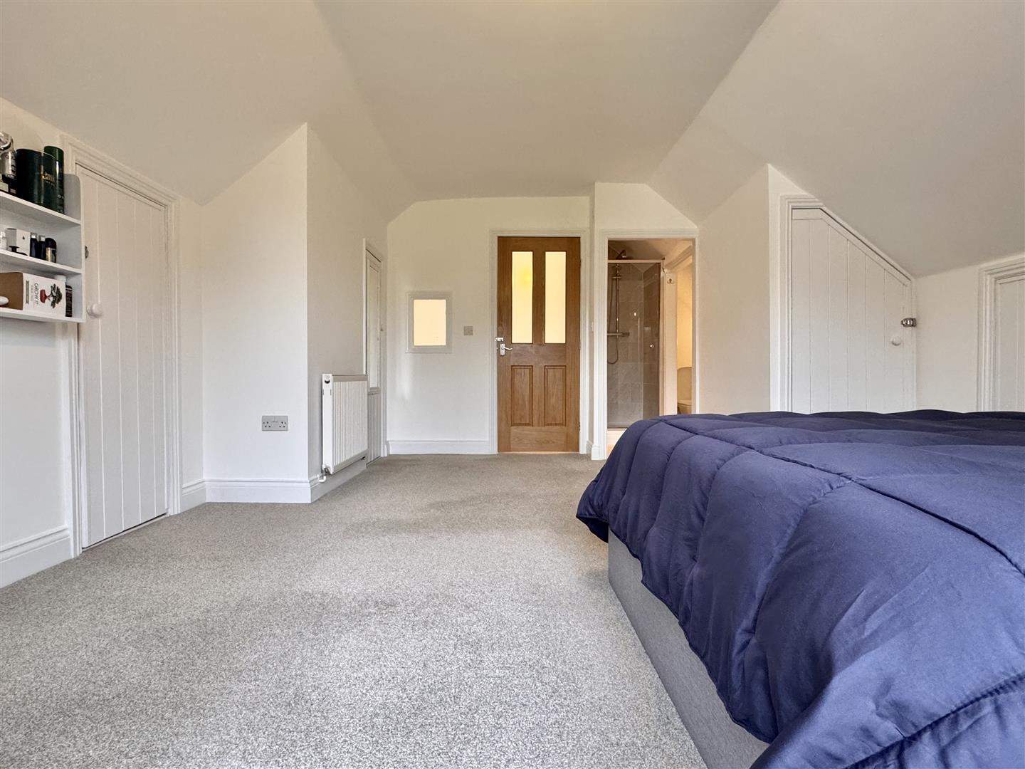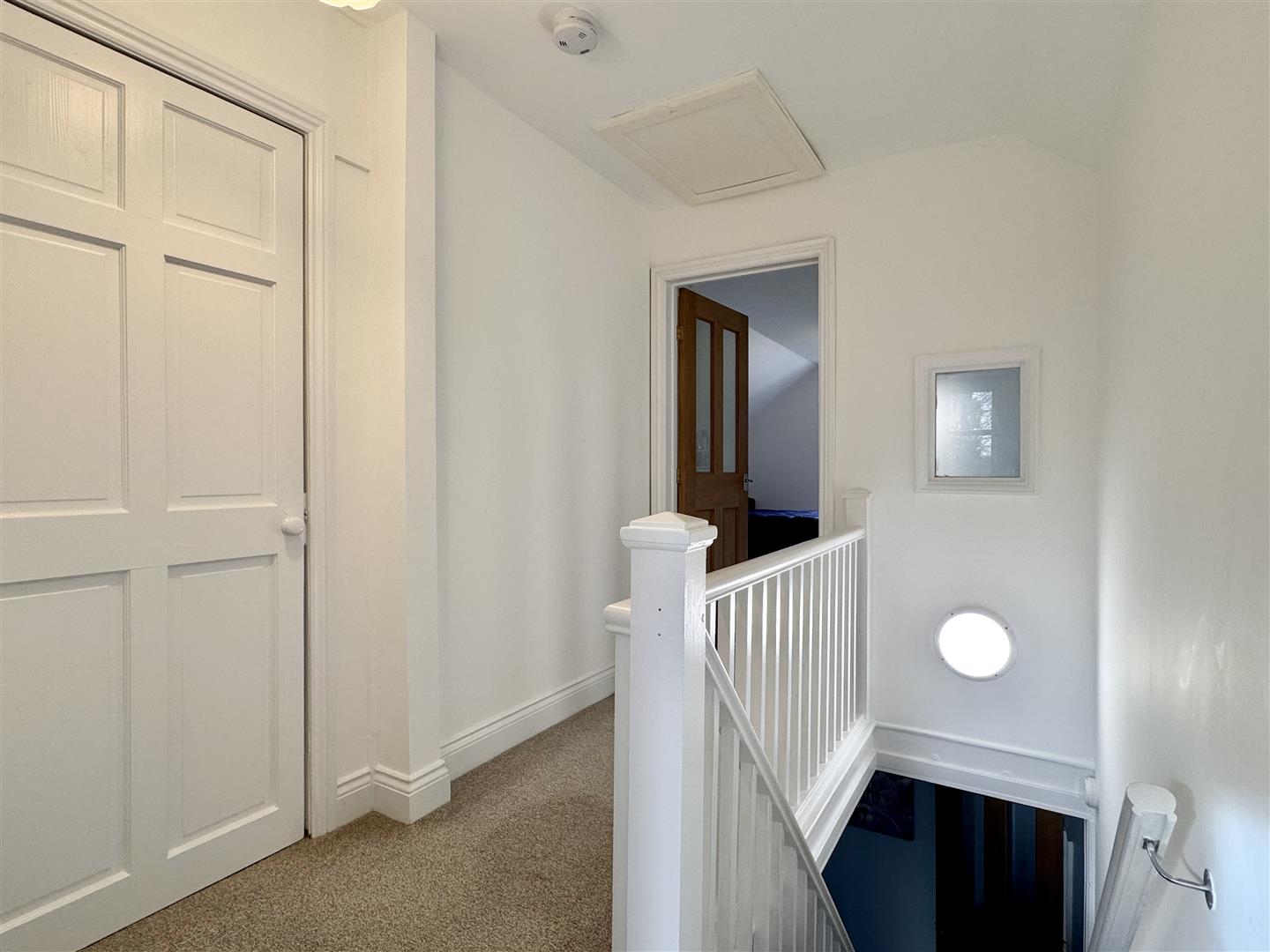 Landing: - Loft access, built-in storage/airing cupboard, carpeted flooring.
