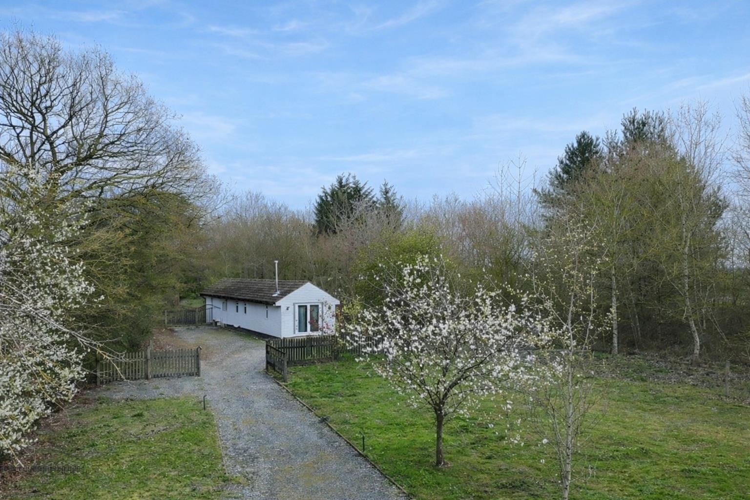 Double glazed windows to side aspect, kitchen area comprising a series of matching base and wall units, roll top work surfaces incorporating a one and a half bowl sink with central mixer tap and drainer, space for fridge/freezer, dishwasher microwave oven and washing machine, breakfast bar. Opening to lounge/dining area with log burning stove, wall-mounted air conditioning unit, carpeted flooring and double doors to front aspect.