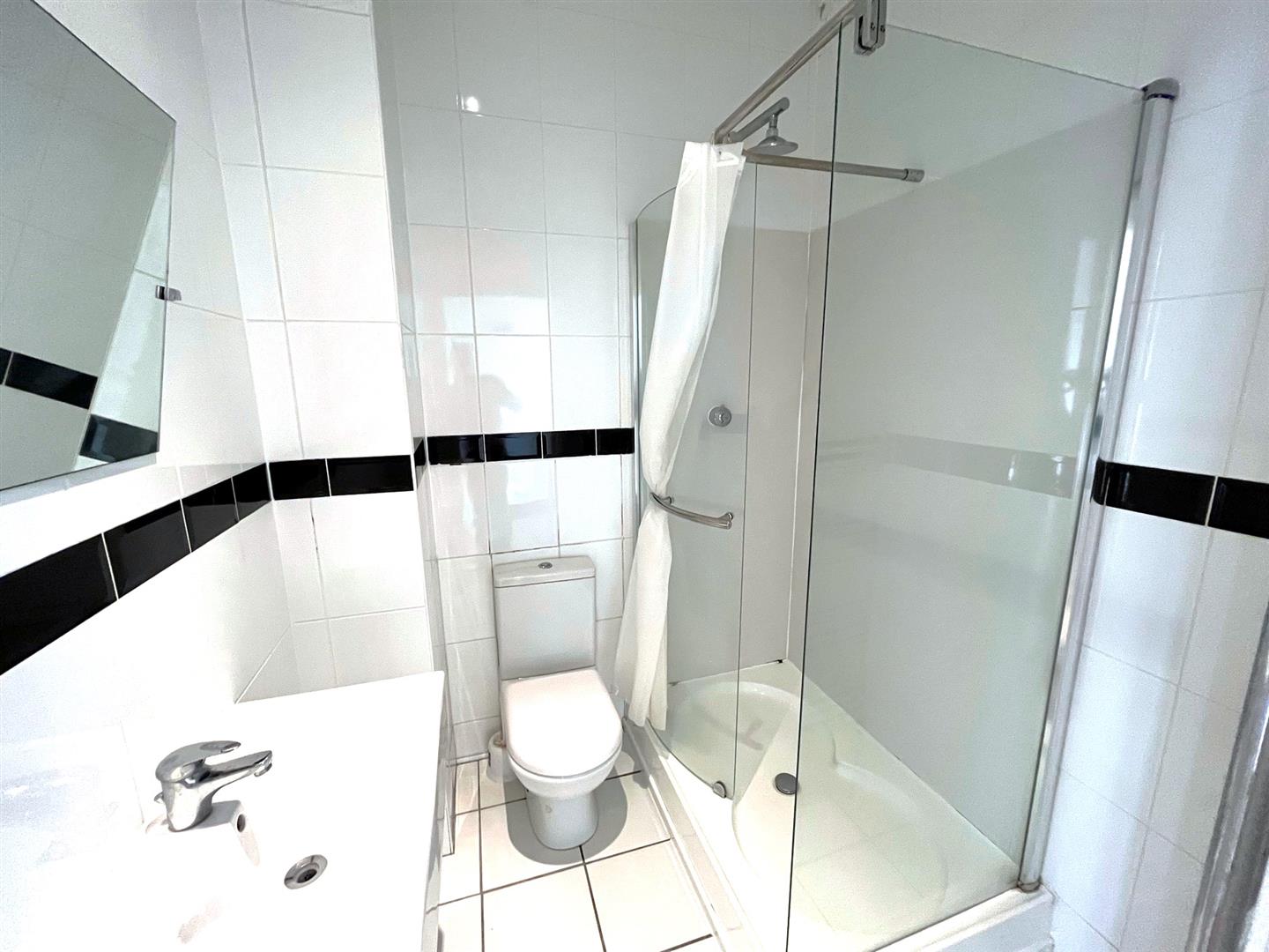 The bedroom is a comfortable double with pleasant views to the rear through the original sash window with working shutters. The bathroom is fully tiled and comprised of a contemporary white suite with a recessed wash basin, floating WC with integrated cistern, and a stylish walk in double shower cubical with large rose and glass and chrome finished shower screen.
