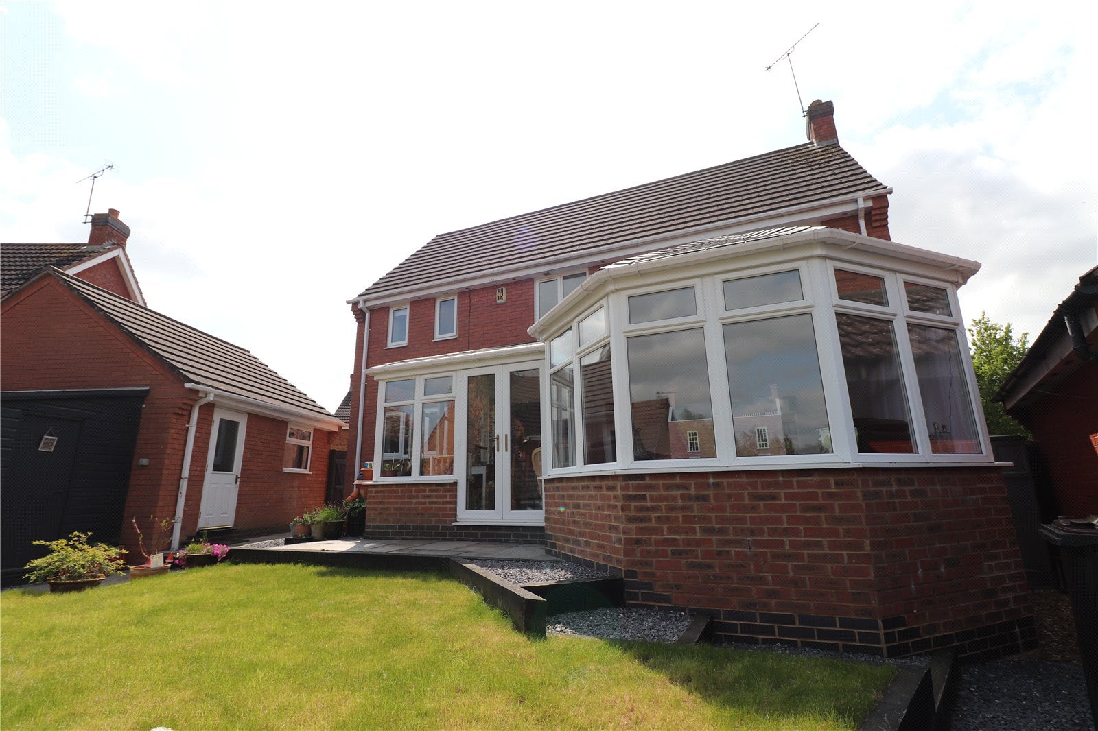 A beautiful presented four double bedroom detached property on the sough after Lang Farm development. In excellent decorative order the property benefits from 21FT LOUNGE, 20FT FAMILY ROOM, RE-FITTED KITCHEN, dining room, utility room, DOWNSTAIRS CLOAKROOM, BEDROOM ONE WITH RE-FITTED EN-SUITE AND DRESSING AREA, THREE FURTHER DOUBLE BEDROOMS, FAMILY BATHROOM, DOUBLE GARAGE CURRENTLY USED AS A WORKROOM BUT COULD BE RE-INSTATED, gas central heating, SOLAR PANELS, Upvc double glazing and a DELIGHTFUL LANDSCAPED REAR GARDEN. Viewing is essential to fully appreciate this property. EPC - C