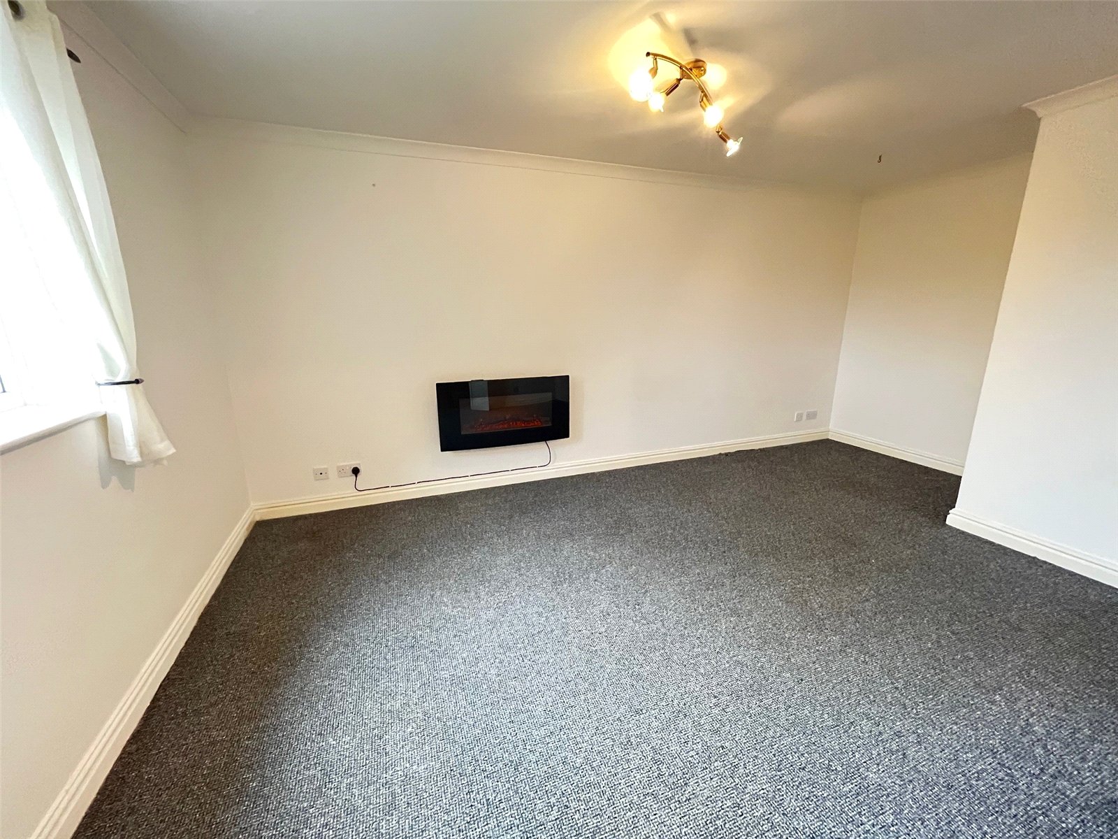 Lounge 17'4" Max x 11'2" (5.28m Max x 3.4m). A spacious rom with remote controlled feature wall mounted electric flame effect fire, television point, coving to ceiling, BT point, Upvc double glazed window to rear aspect, double Louvre doors to