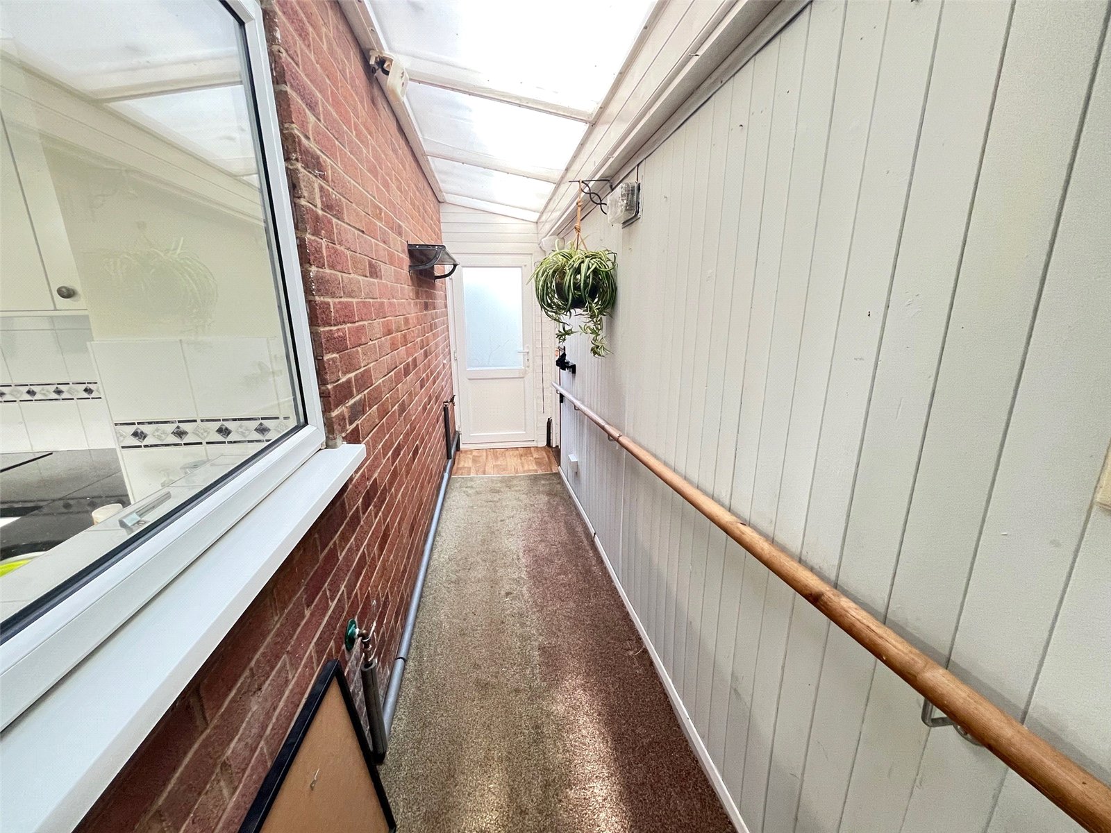 Covered Walk Way 15'8" x 3'4" (4.78m x 1.02m). Part opaque double glazed double opening doors to rear garden, outside tap, power and light connected, part glazed wooden door to