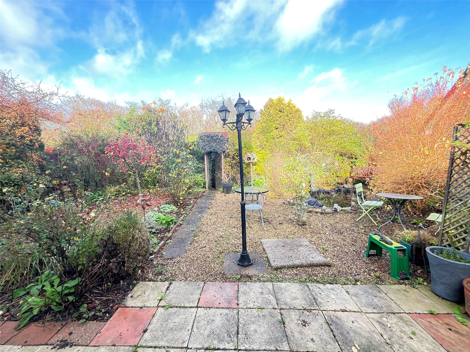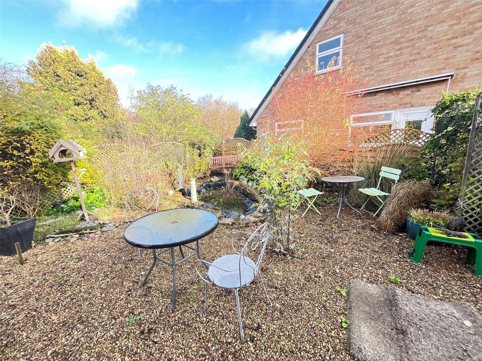 Rear A large private and enclosed rear garden that benefits from not being overlooked, paved patio area with shrubs and flower borders, gated access to front, deep gravel beds with shrubs and flowers, the middle of the garden has an ornamental pond with paved seating area, deep beds with shrubs and flowers, steps down with trellis gate to further 'secret' part of the garden with a paved seating area to one side, a lawn area to the other side with hardstanding for green house and shed, enclosed by timber fencing