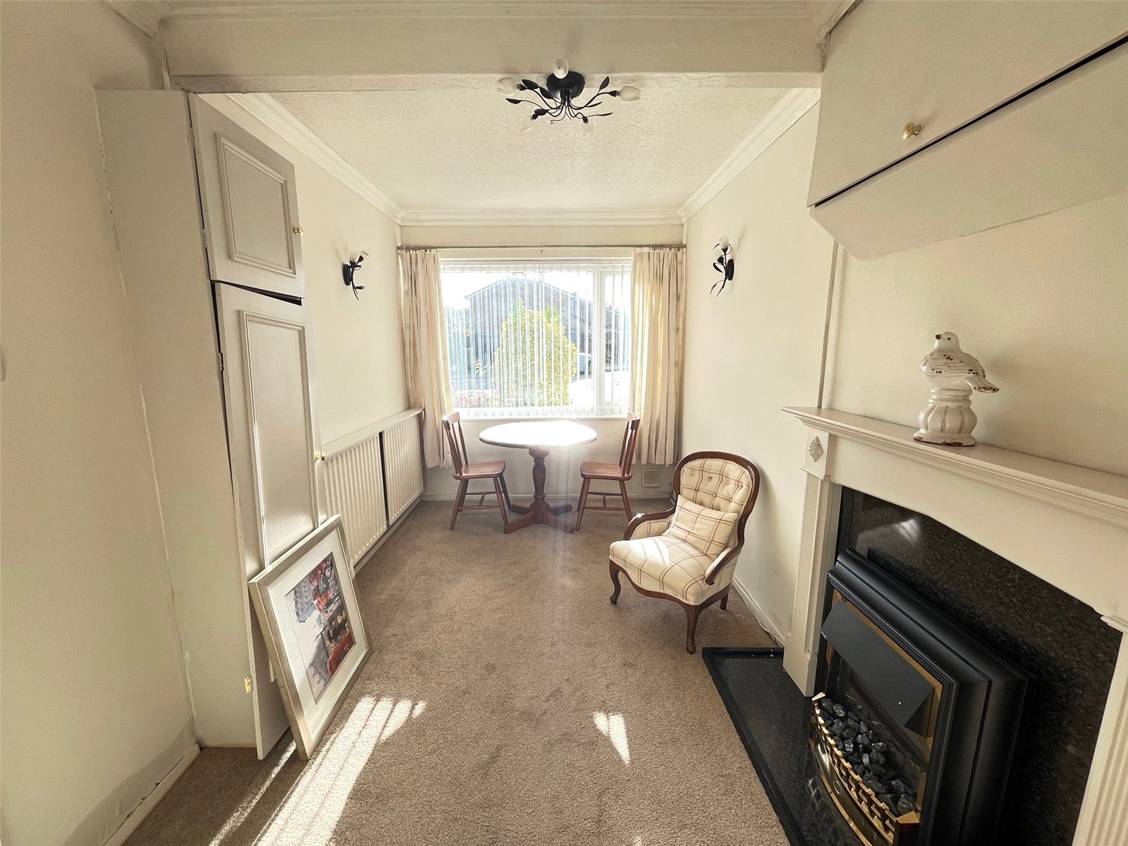 Snug 15' x 7'8" (4.57m x 2.34m). A lovely room with the focal point being a feature fireplace with wooden surround, mantle base and hearth an electric fire, radiator, Upvc double glazed window to front aspect, storage cupboard with shelving, two wall light points, coving to ceiling