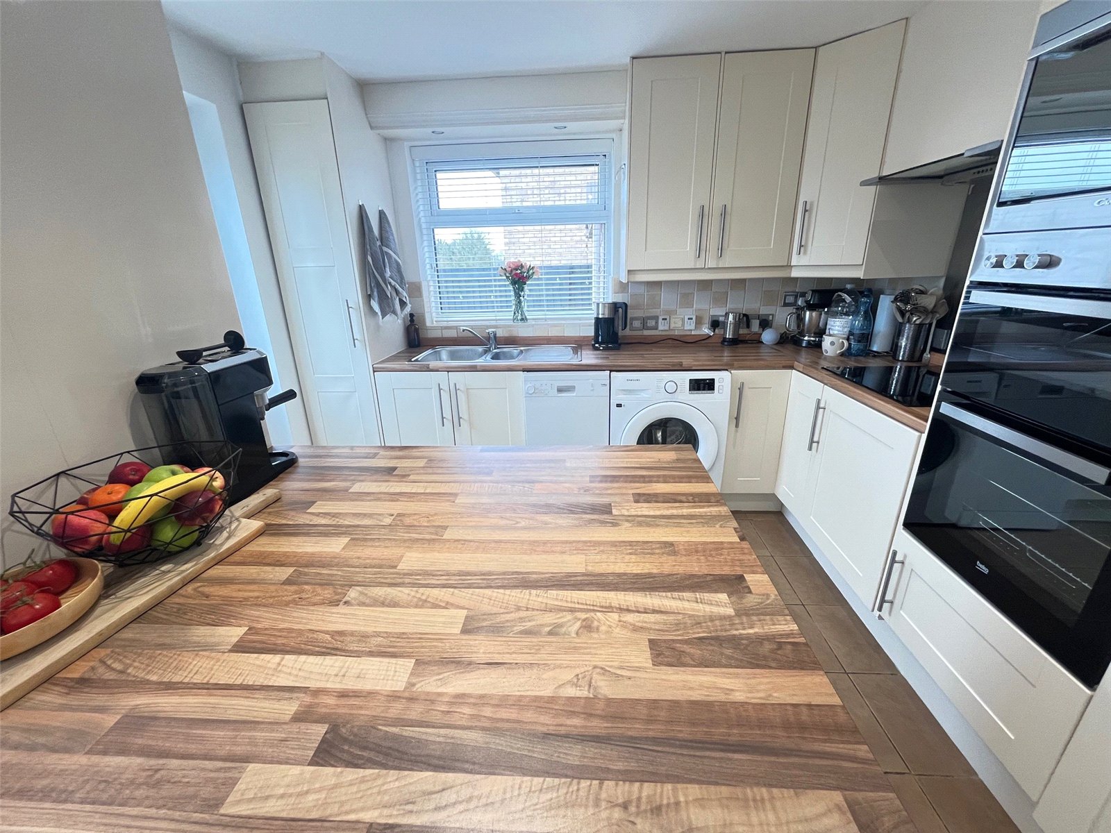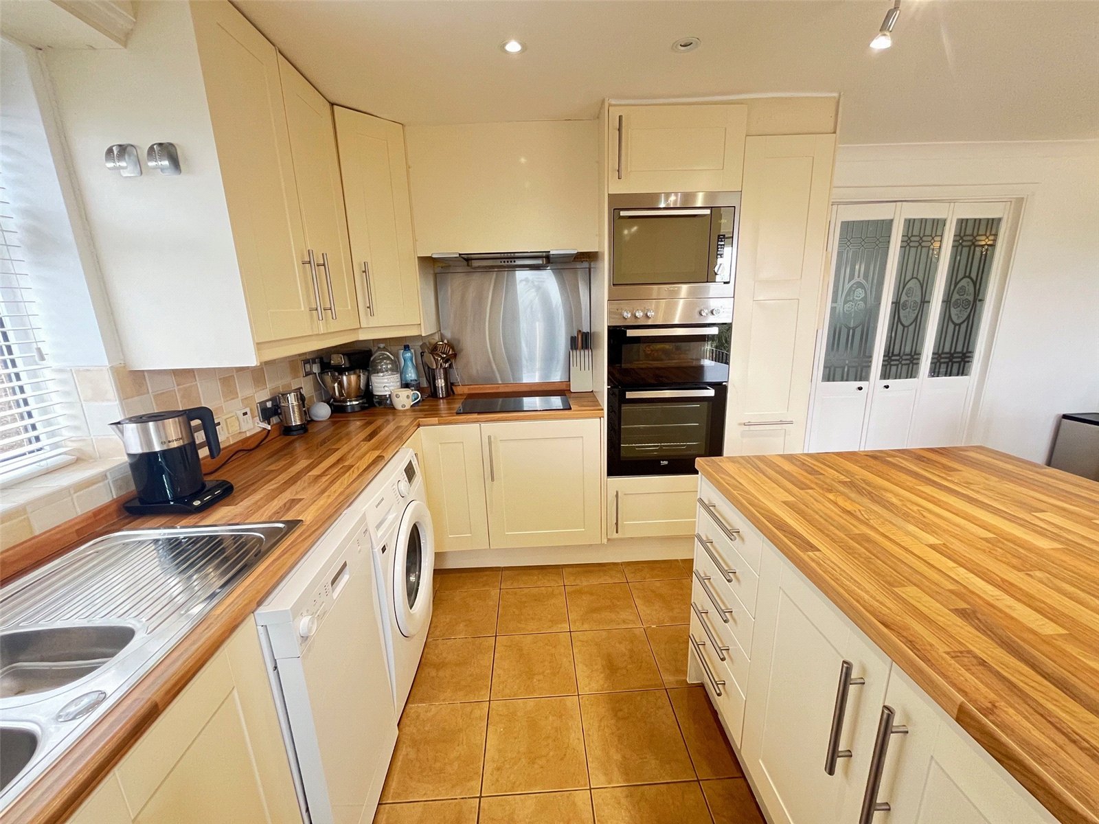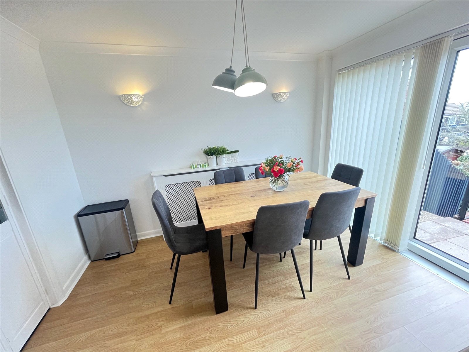 Kitchen/Diner 16'8" x 11' (5.08m x 3.35m). A spacious open plan kitchen diner with the kitchen area being fitted with a range of eye and base level units with rolled edge work surfaces over, built in double electric oven and microwave, inset 'Neff' hob with stainless steel splashback and extractor fan over, one and a quarter bowl stainless steel sink and drainer unit with mixer tap over, space for full height fridge/freezer, drawer stack, space and plumbing for dishwasher and washing machine, recessed lighting, ceramic tiled floor, tiling to water sensitive areas, Upvc double glazed window to side aspect, part opaque Upvc double glazed door opening onto rear garden. The dining area has wooden laminate flooring, radiator, Upvc double glazed tilt and slide patio doors, drawer stack, full height cupboard, space for table and chairs