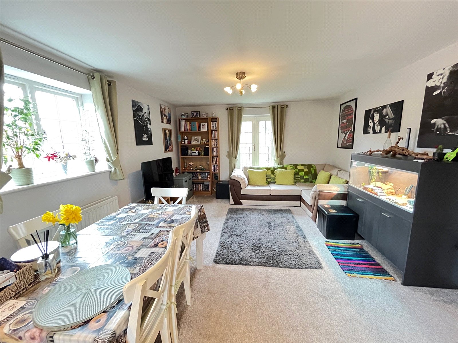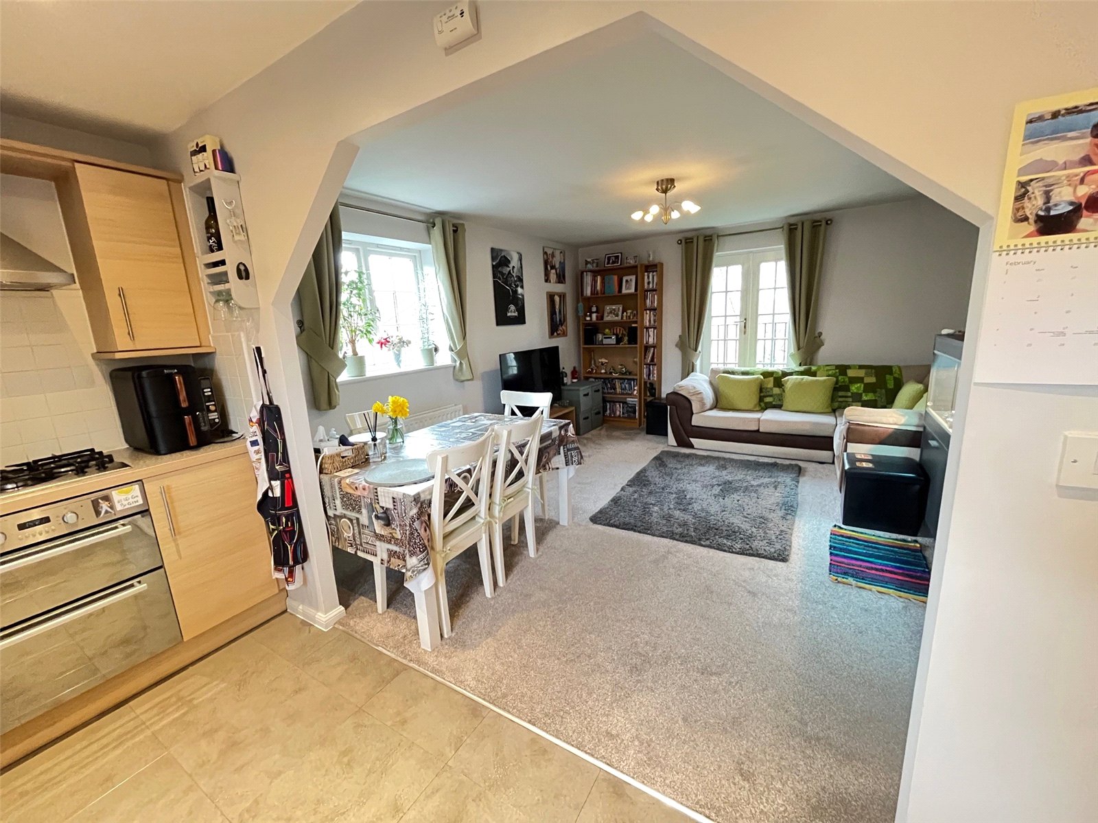 Lounge/Diner 14'4" (4.37m) x 12'8" (3.86m) + 5'2" (1.57m) x 3'6" (1.07m). A beautifully presented spacious room with double glazed French doors to rear aspect with Juliet balcony and views over Daventry reservoir, two radiators, double glazed window to side aspect, television point, BT point, deep larder cupboard, opening into :-