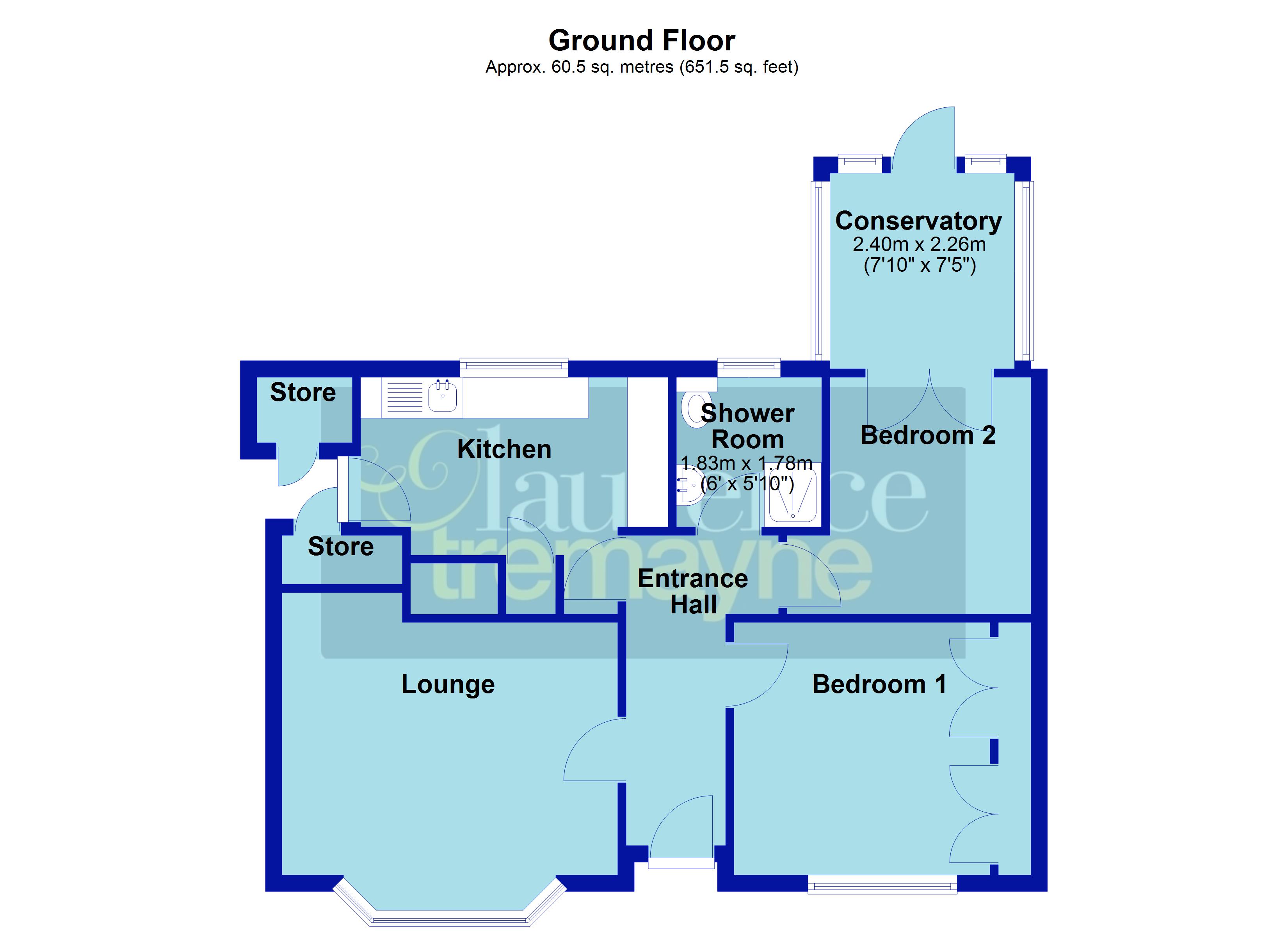Bedroom Two 9' (2.74m) x 8' (2.44m) plus door recess. Double glazed French doors opening into the conservatory, radiator, coved ceiling.