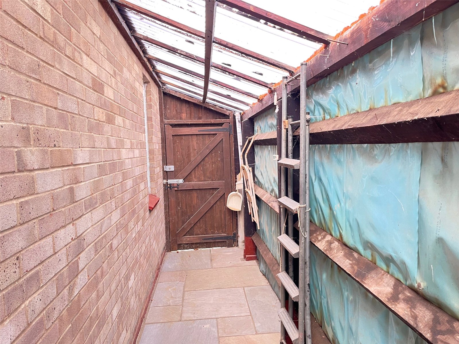 Covered Side Aspect 20'8" x 4' (6.3m x 1.22m). Two brick built sheds bother with power connected on with space and plumbing for a washing machine, covered walkway with gated access to front and rear.