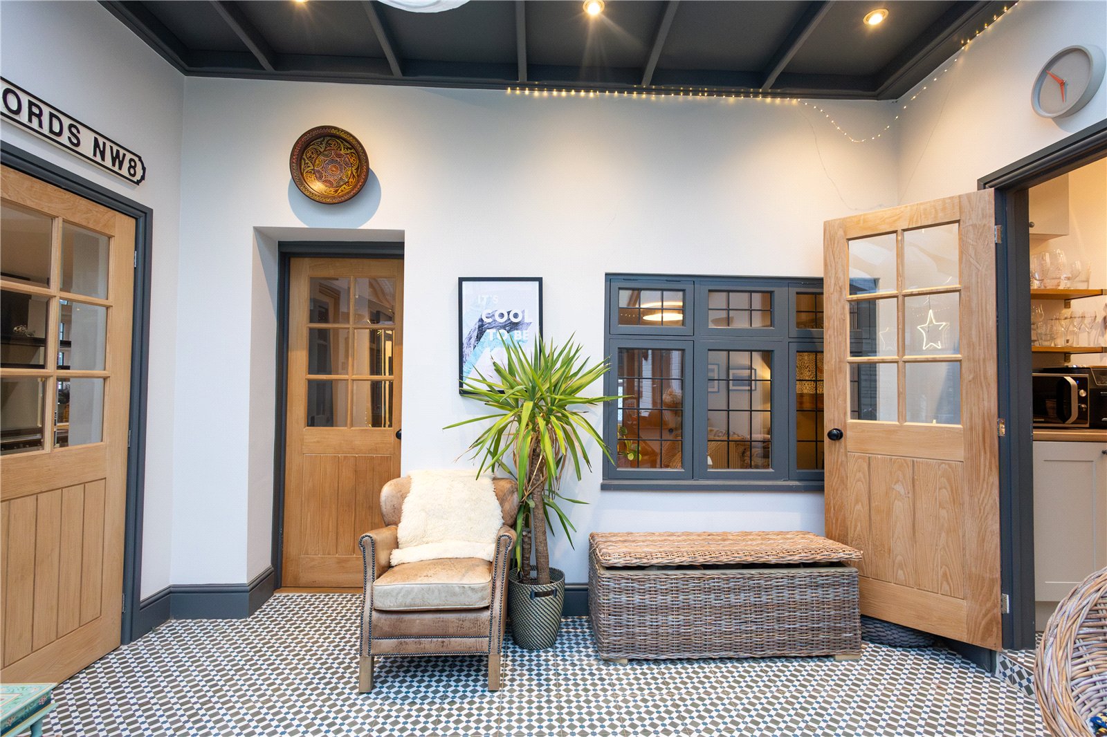 Entered Via A part glazed door with outside courtesy light to one side