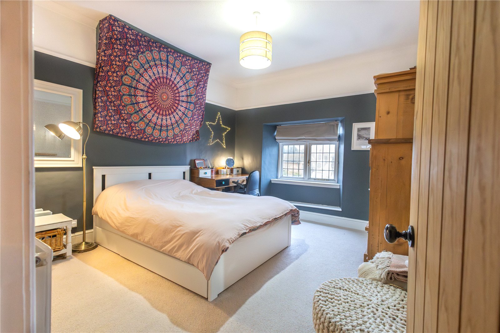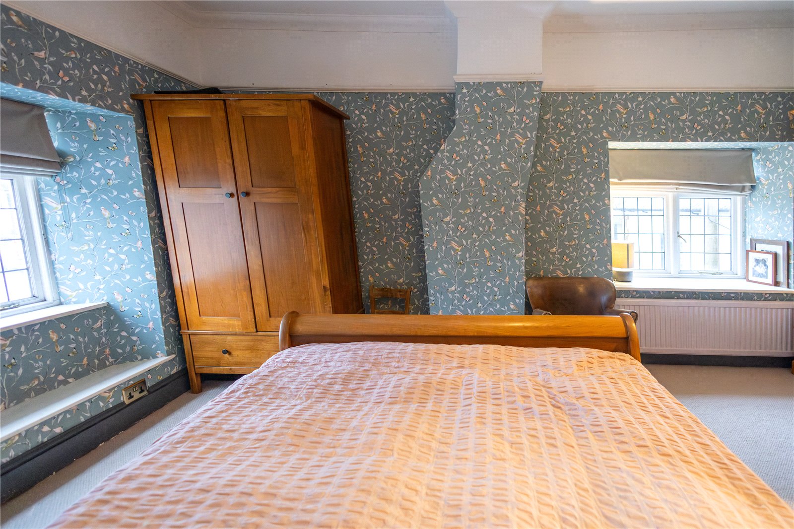 Bedroom Two 16'9" (5.1m) Reducing to 12'7" (3.84m) x 11'8" (3.56m). A dual aspect room with leaded double glazed windows to front and side aspects, again with deep skirting and dado rail