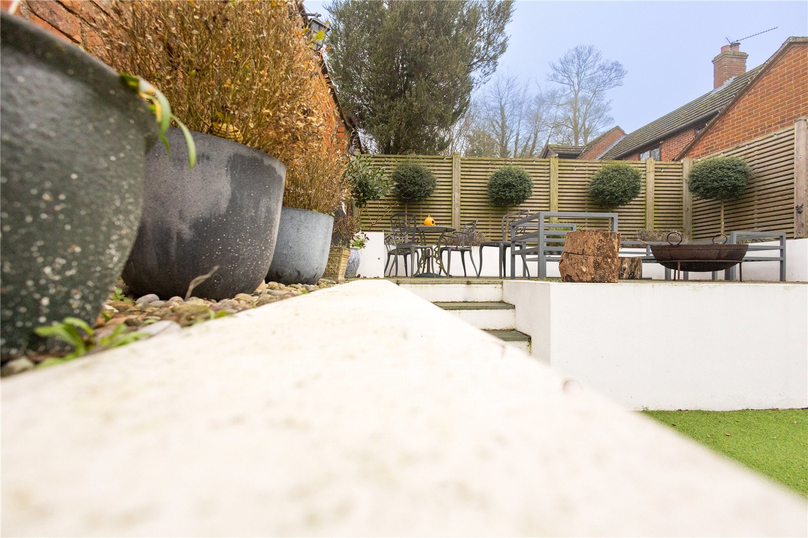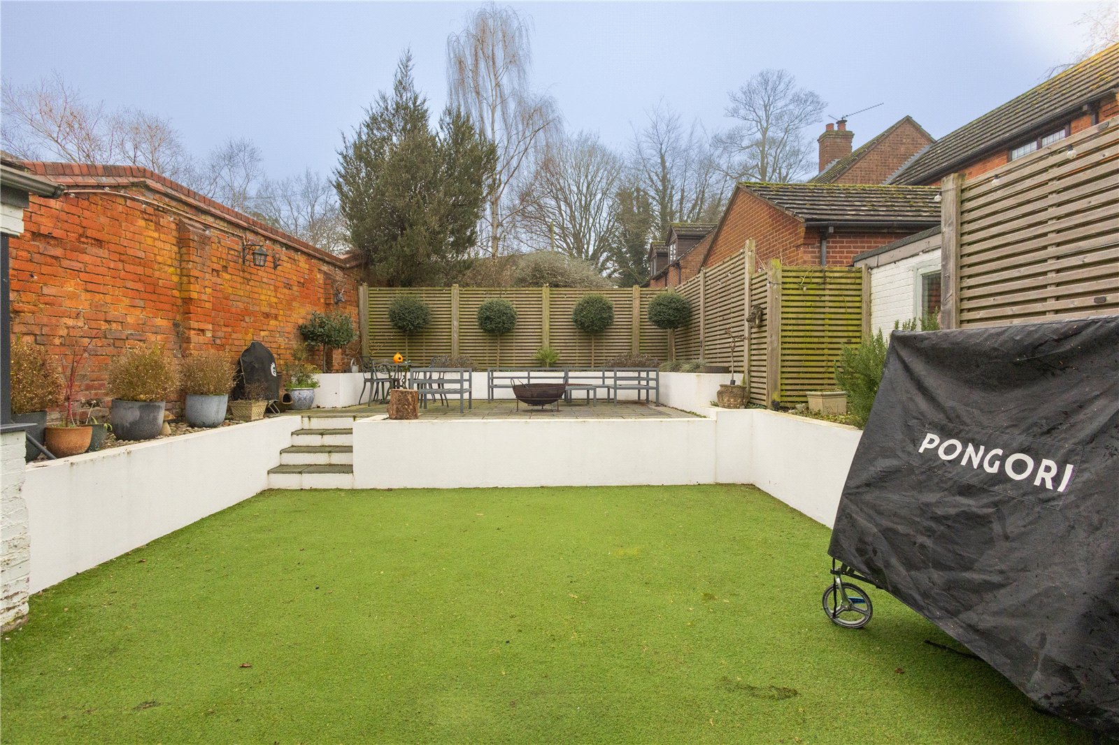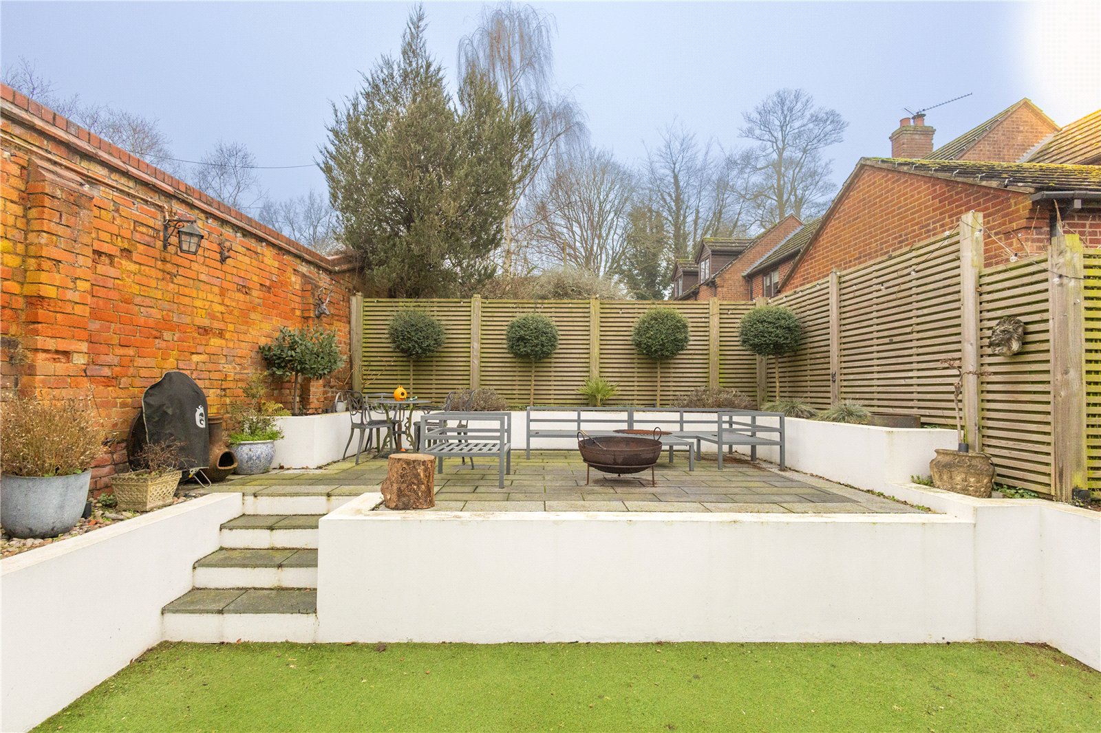 Rear A fully enclosed southerly facing rear garden which offers a high degree of privacy, the central area has artificial grass and four steps lead to a paved patio seating area with inset flower borders, the garden is given a mature feel with a period brick wall to one side, the remaining two boundaries are 6ft timber fencing, oil fired boiler, pedestrian gateway opening onto driveway