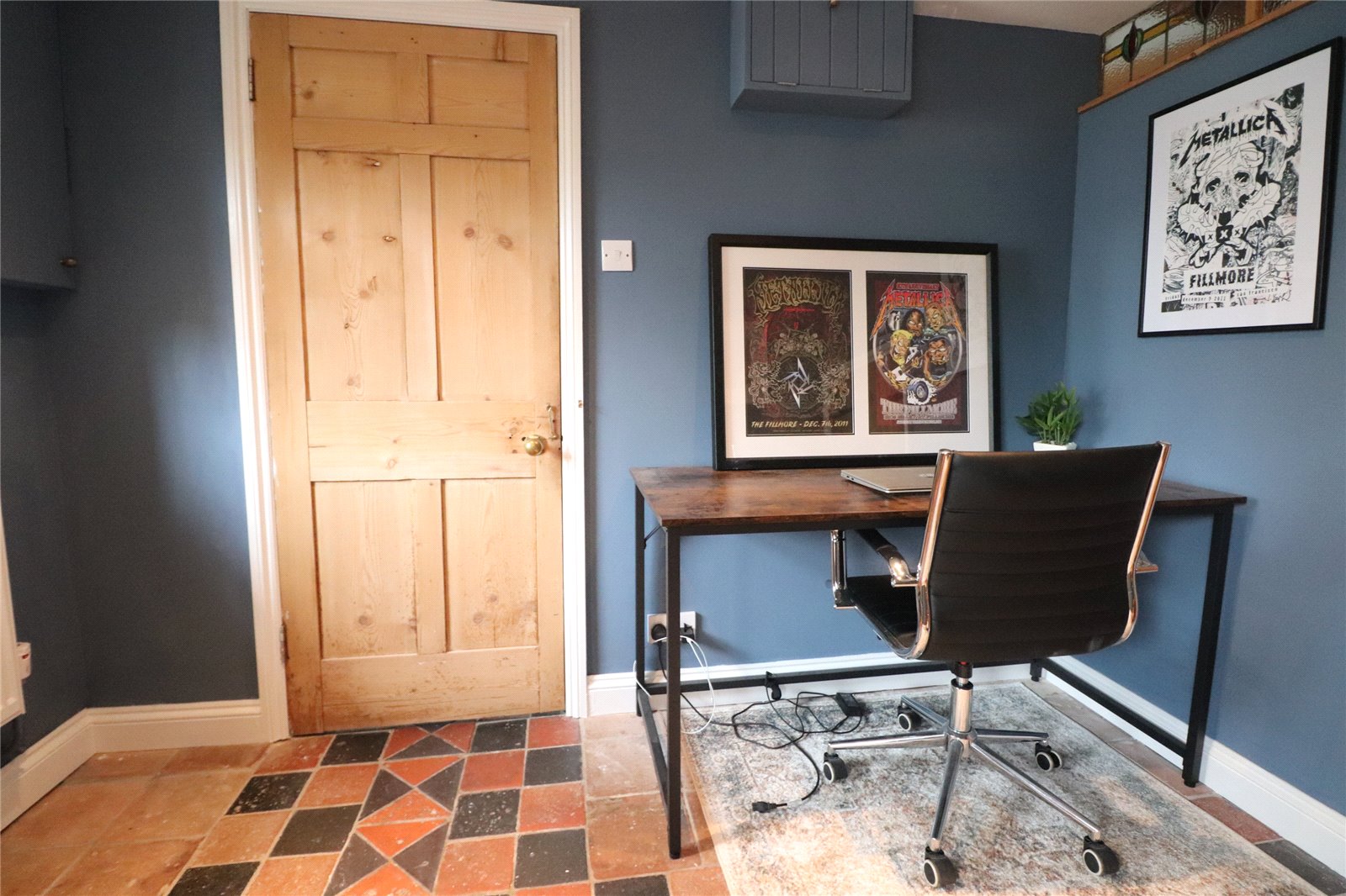 Study 9'8" x 8'8" (2.95m x 2.64m). Upvc double glazed window to front aspect, radiator, decorative tiled floor, extractor, storage cupboard, reassessed spotlights, wood panel door to :-