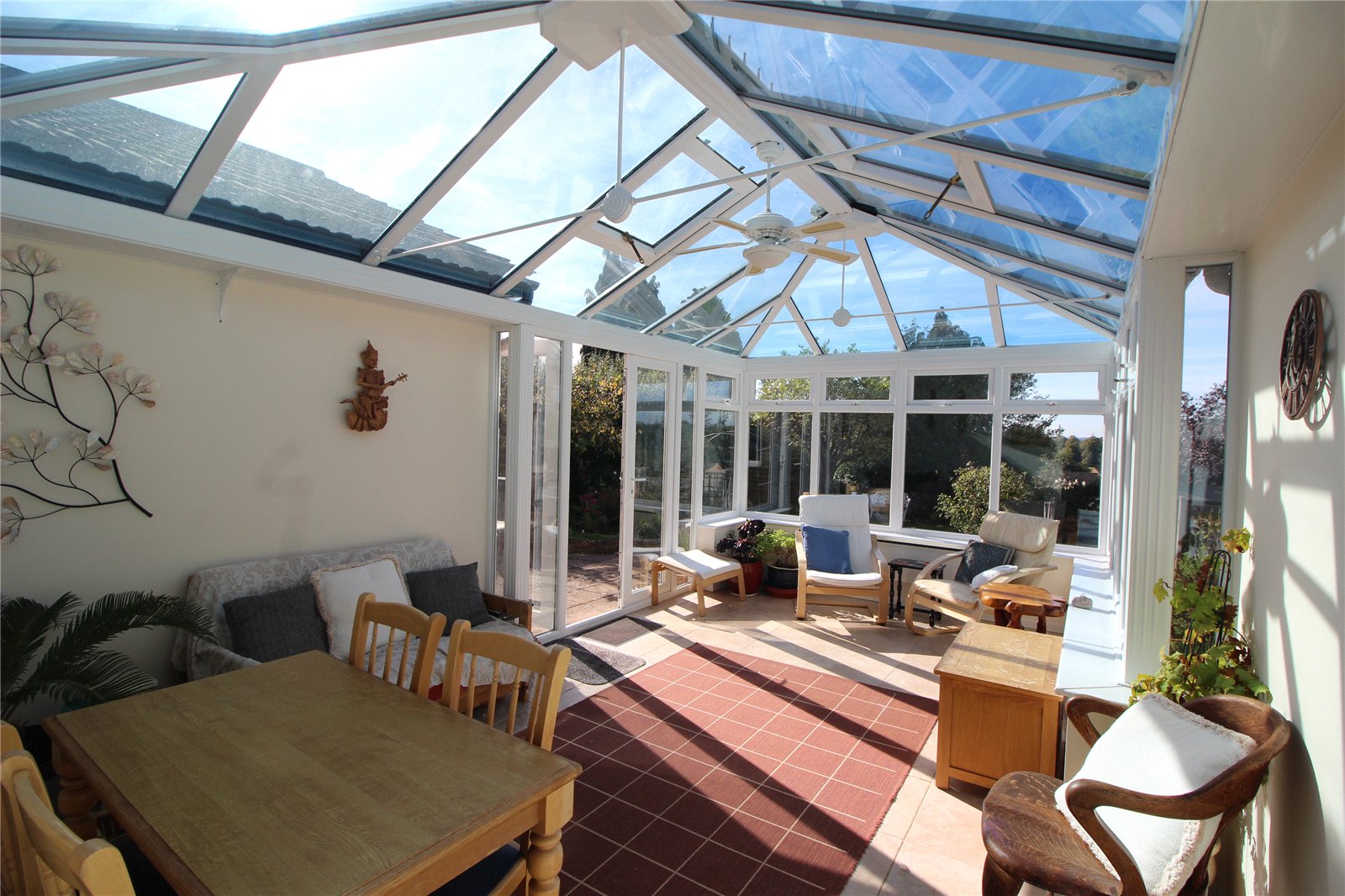 Conservatory Sunroom 18'7" x 12'2" Max (5.66m x 3.7m Max). A superb addition to the property, the room has plastered walls to one end and Upvc double glazed units set onto base walling to the other with a pitched double glazed roof with ceiling fan and roof vents, double opening doors to garden, tiled floor, electric heating
