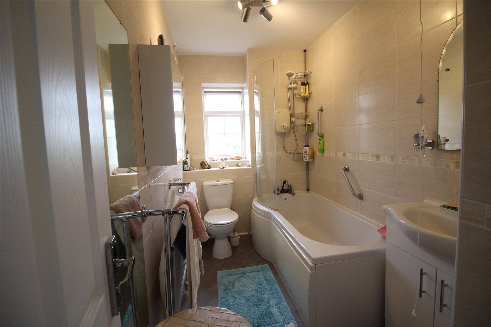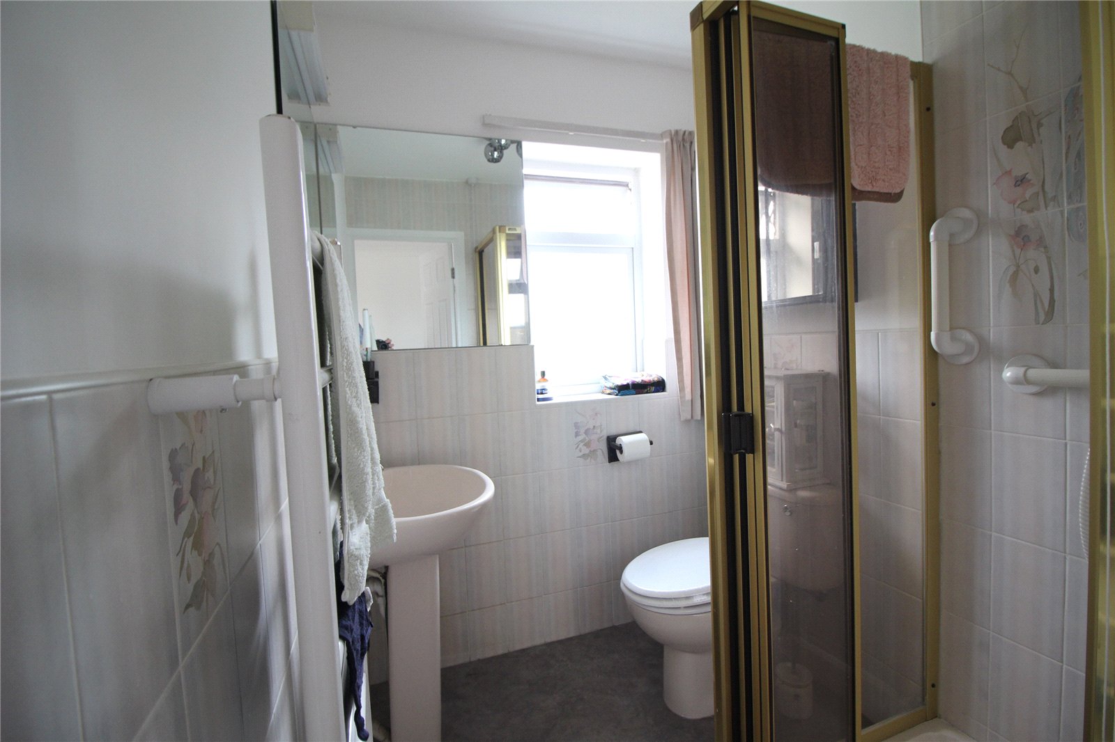 Ensuite Bathroom 5'8" x 5'2" (1.73m x 1.57m). Fitted with a three piece suite comprising of close couple WC, pedestal wash hand basin and corner shower cubicle. Half height wall tiling, coving to ceiling, chrome heated towel rail, shaver point, Upvc double glazed window to the rear aspect