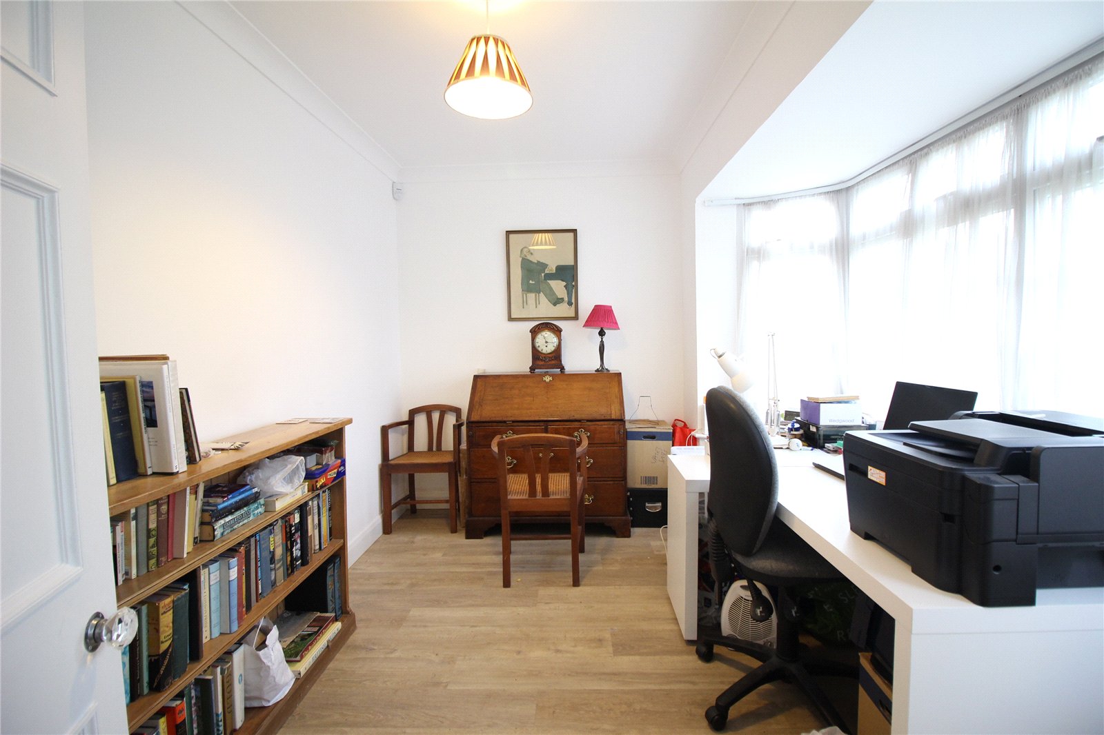 Study/Third Reception Room 11'10" (3.6m) x 9'5" (2.87m) Into Bay. Accessed from the hallway, a third reception room which could be used for multiple purposes and is currently used as a study, given added character with a Upvc double glazed walk in bay to the front aspect with double panel radiator under, continuation of wood effect flooring, coving to ceiling