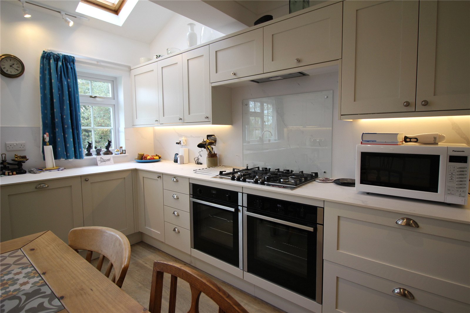 Kitchen 16'7" x 15' (5.05m x 4.57m). A beautifully presented room which is given added character with part vaulted ceiling with Velux double glazed skylights, fitted with ample range of both base and eye level units running to three walls, inset stainless steel double bowl Franke sink, inset stainless steel Neff five ring gas hob with built in double ovens below and concealed cistern extractor fan over. Work surfaces with matching splashback giving ample working areas, built In dishwasher, recess suitable for an American style fridge/freezer, continuation of wood effect flooring, coving to ceiling, inset LED downlighters, two Upvc double glazed windows overlooking the rear garden, the room then gives access to the dining area as well as an inner porchway