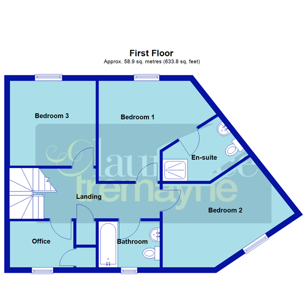 Ensuite    A fully tiled room with glass shower cubicle, counter top wash hand basin set onto wooden base, low level WC, chrome heated towel rail, tiled floor, extractor fan.