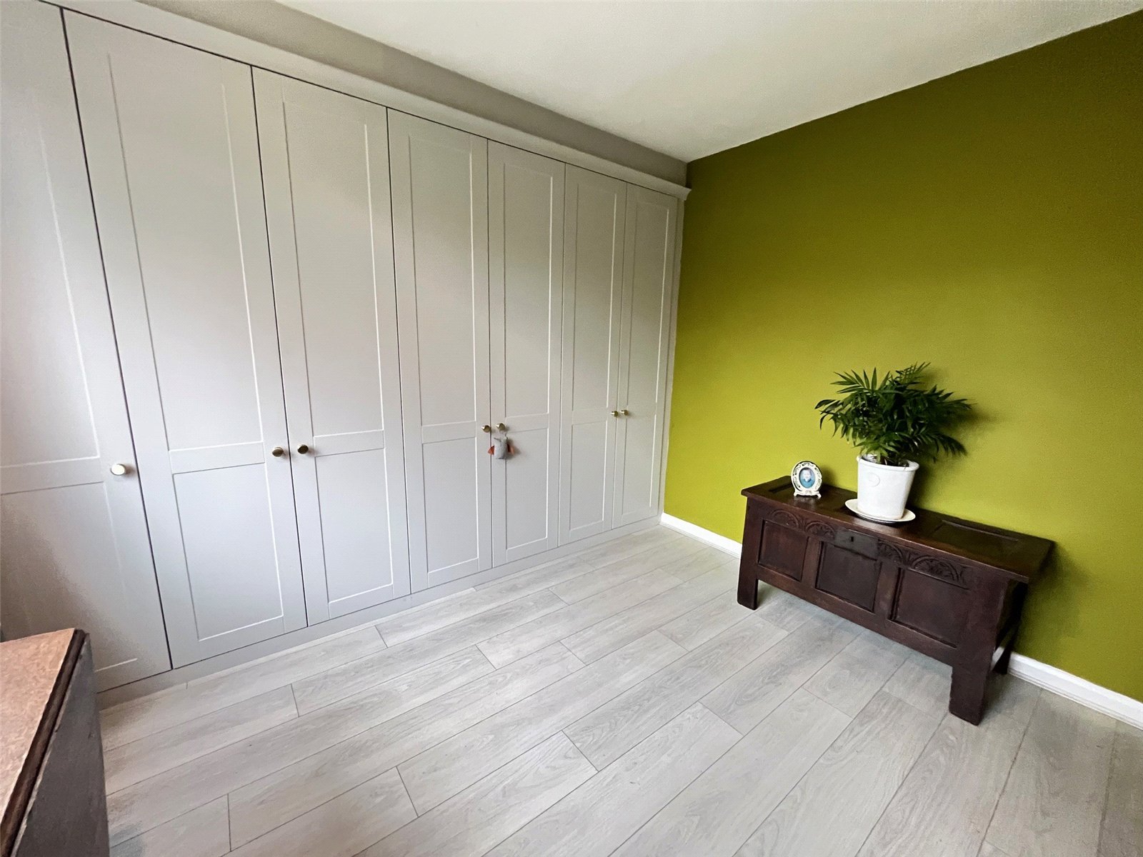 Bedroom Two 10'8" (3.25m) x 9'8" (2.95m) to Wardrobes. Another double bedroom with Upvc double glazed window to front aspect, radiator, wood laminate floor, built in wardrobes to one wall