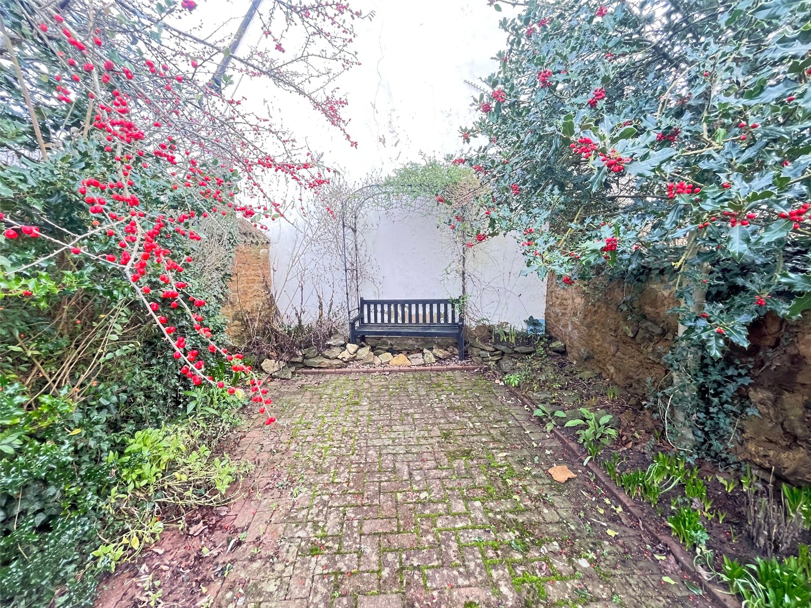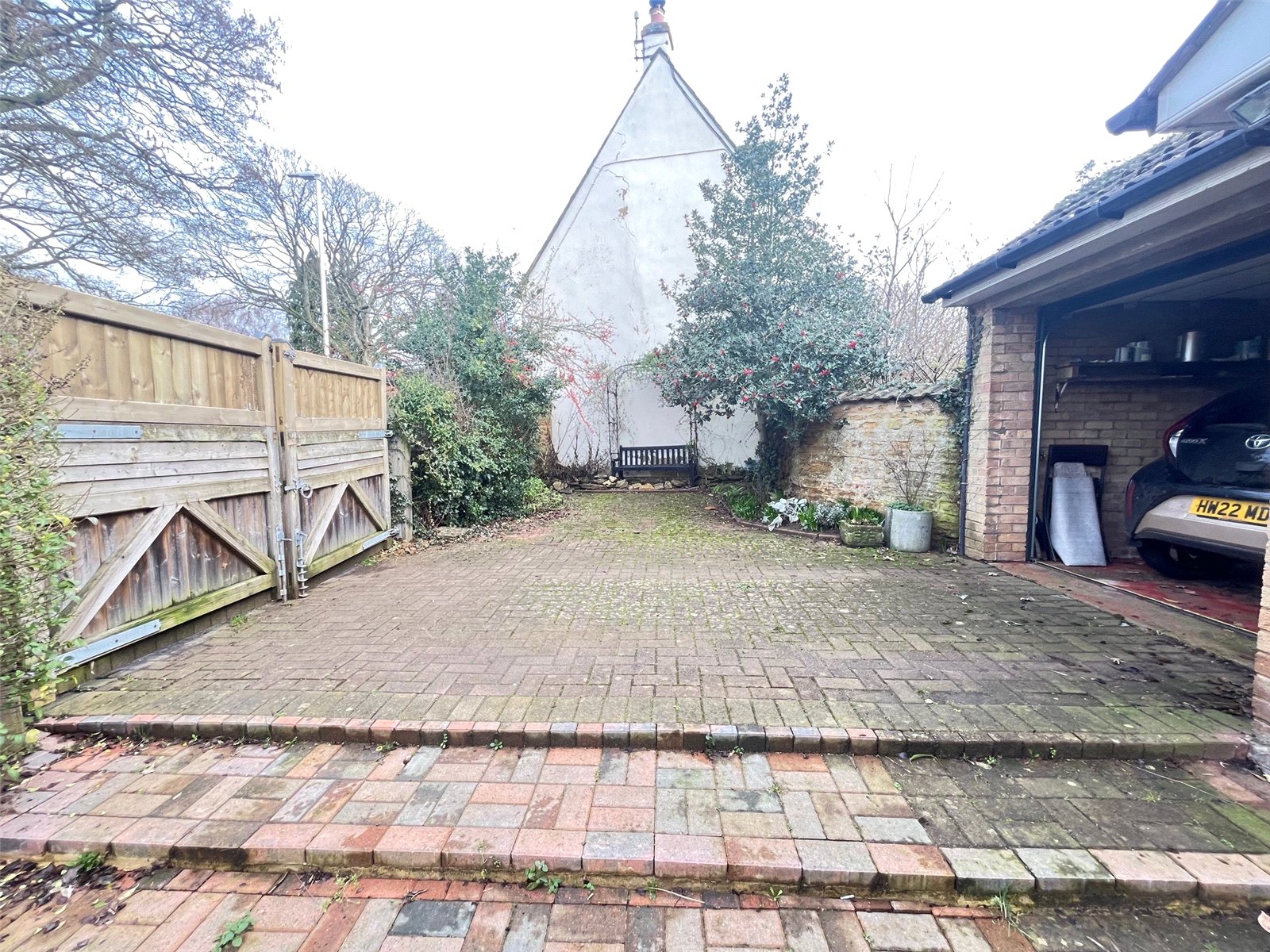 Front A delightful frontage which is laid mainly to lawn, block paved pathway to front entrance via a wooden gate, further block paved patio area with rockery and shrub and flower borders, double wooden gated access to driveway for one car leading to garage, enclosed by mature hedging and stone wall