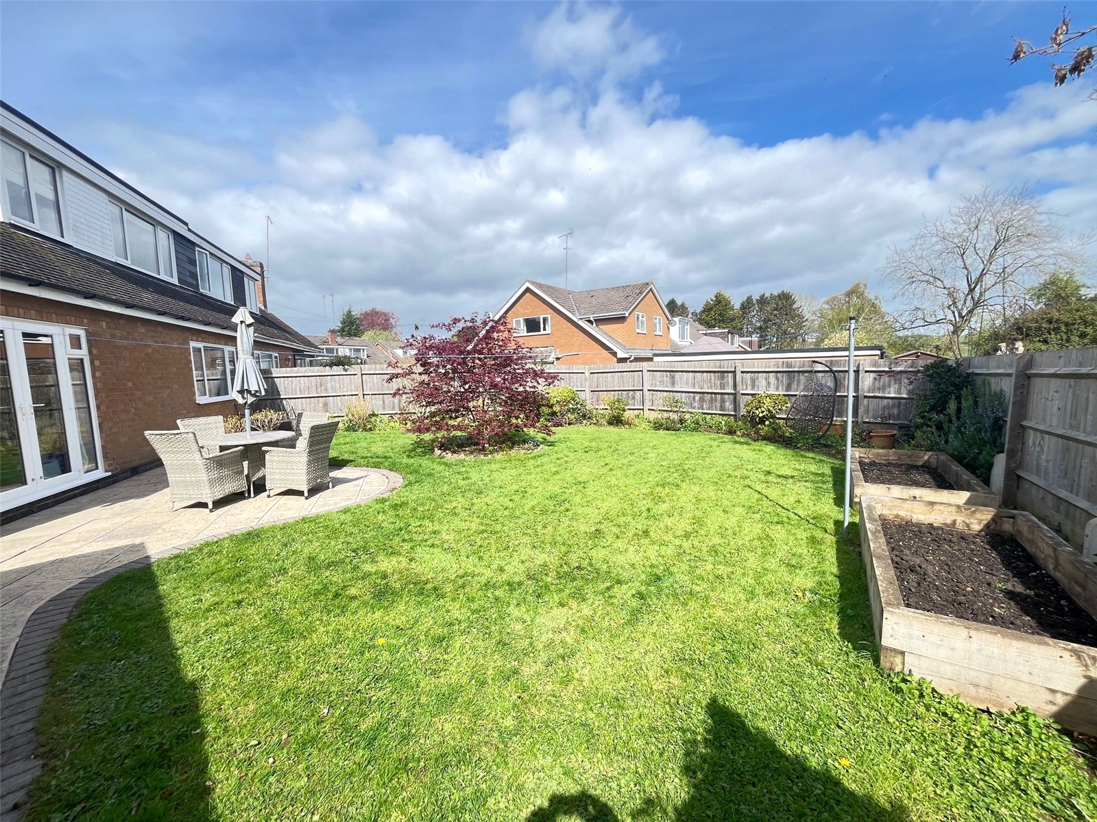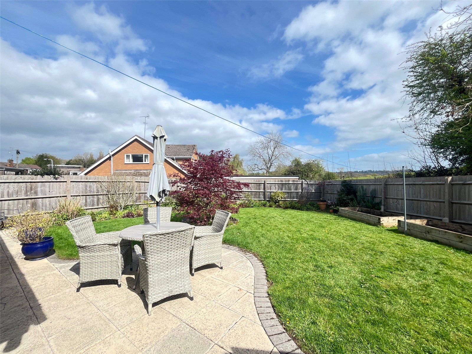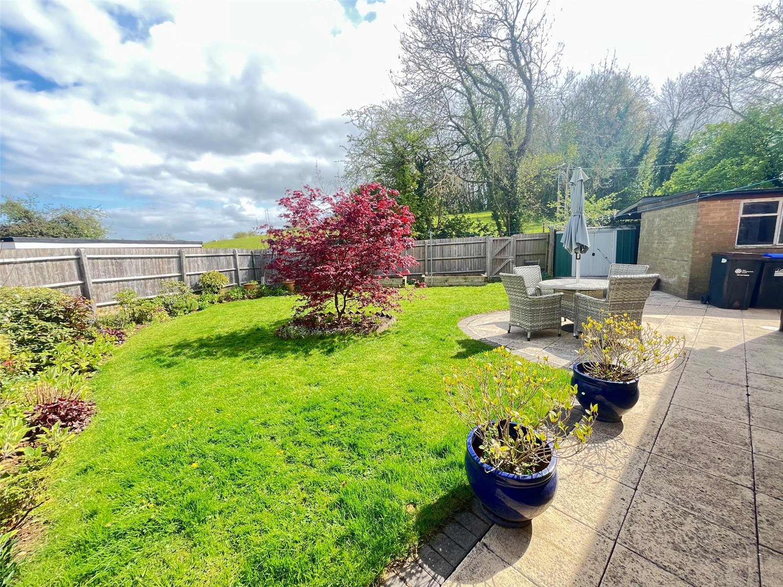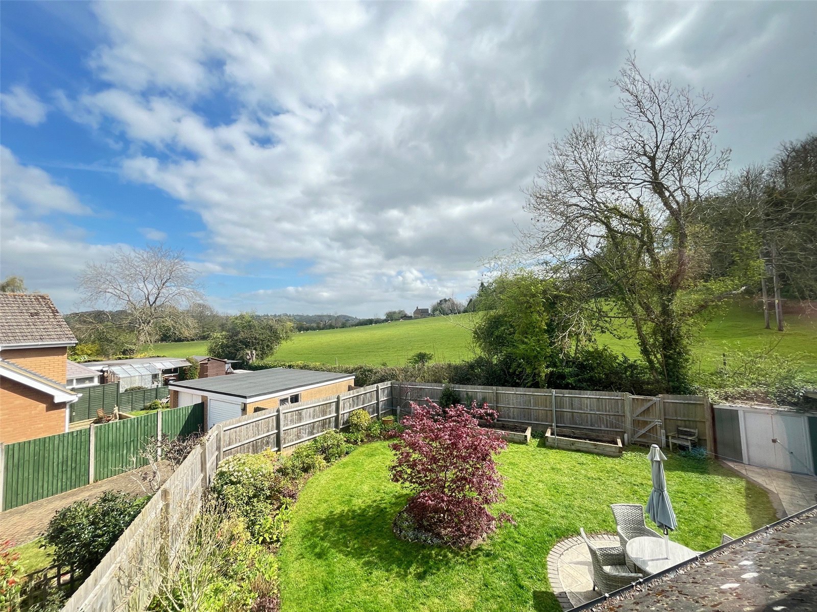 Rear A delightful rear garden that benefits from not being overlooked with fields behind, paved patio area with outside light, lawn area with shrubs and flower borders, pathway that runs the across to the garage, gated access to rear, external power points, access door to garage and gated access to front. Hardstanding for shed, covered storage area with gated access to front, enclosed by the timber fencing
