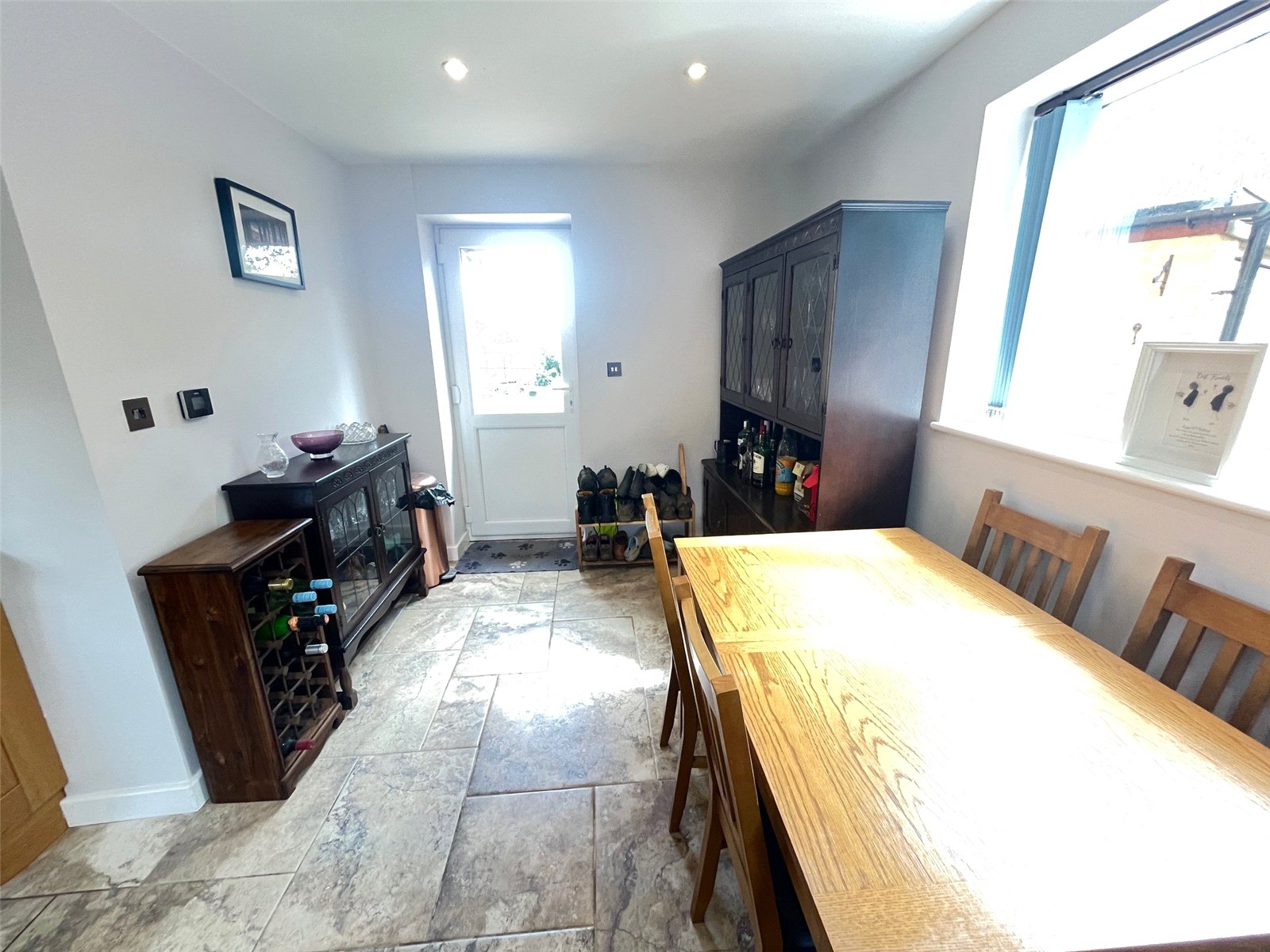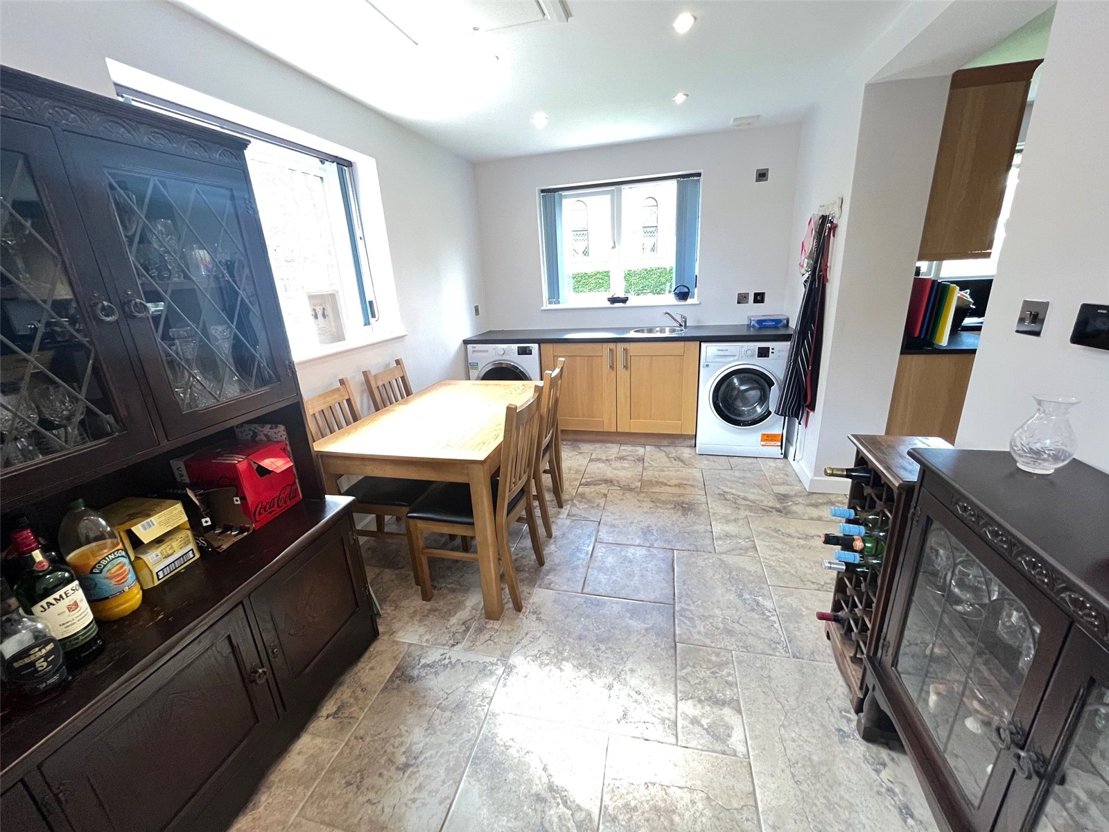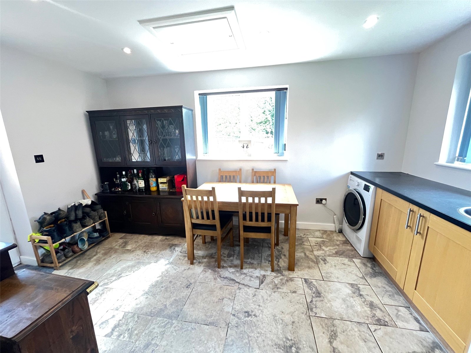 Dining Room/Utility 13'10" x 8'2" (4.22m x 2.5m). Under floor heating, space and plumbing for washing machine and tumble drier, worksurfaces over with inset stainless steel sink with mixer tap over, access to loft space, Upvc double glazed window to side aspect, part opaque Upvc double glazed door to rear aspect, recessed spotlights, extractor fan