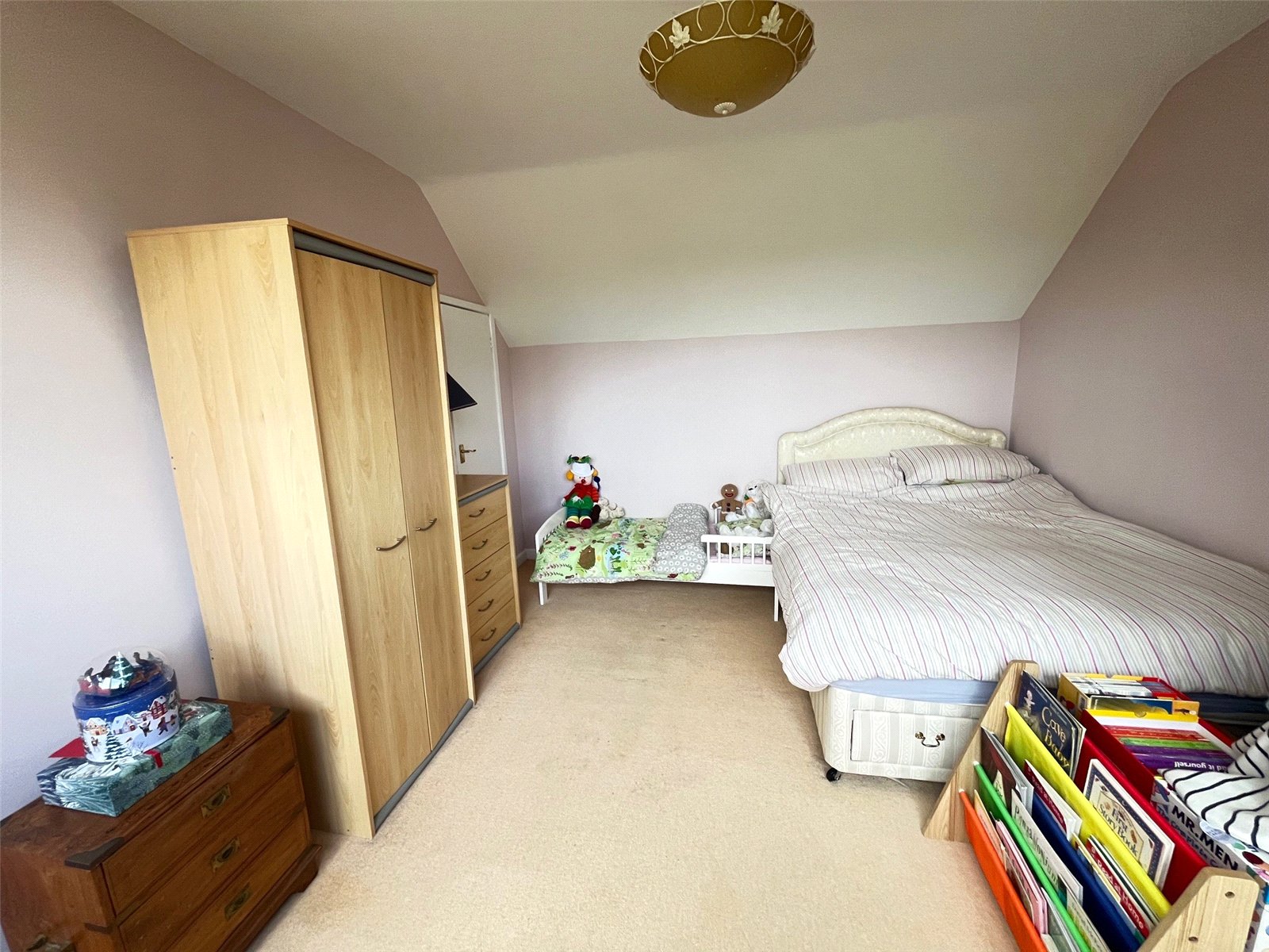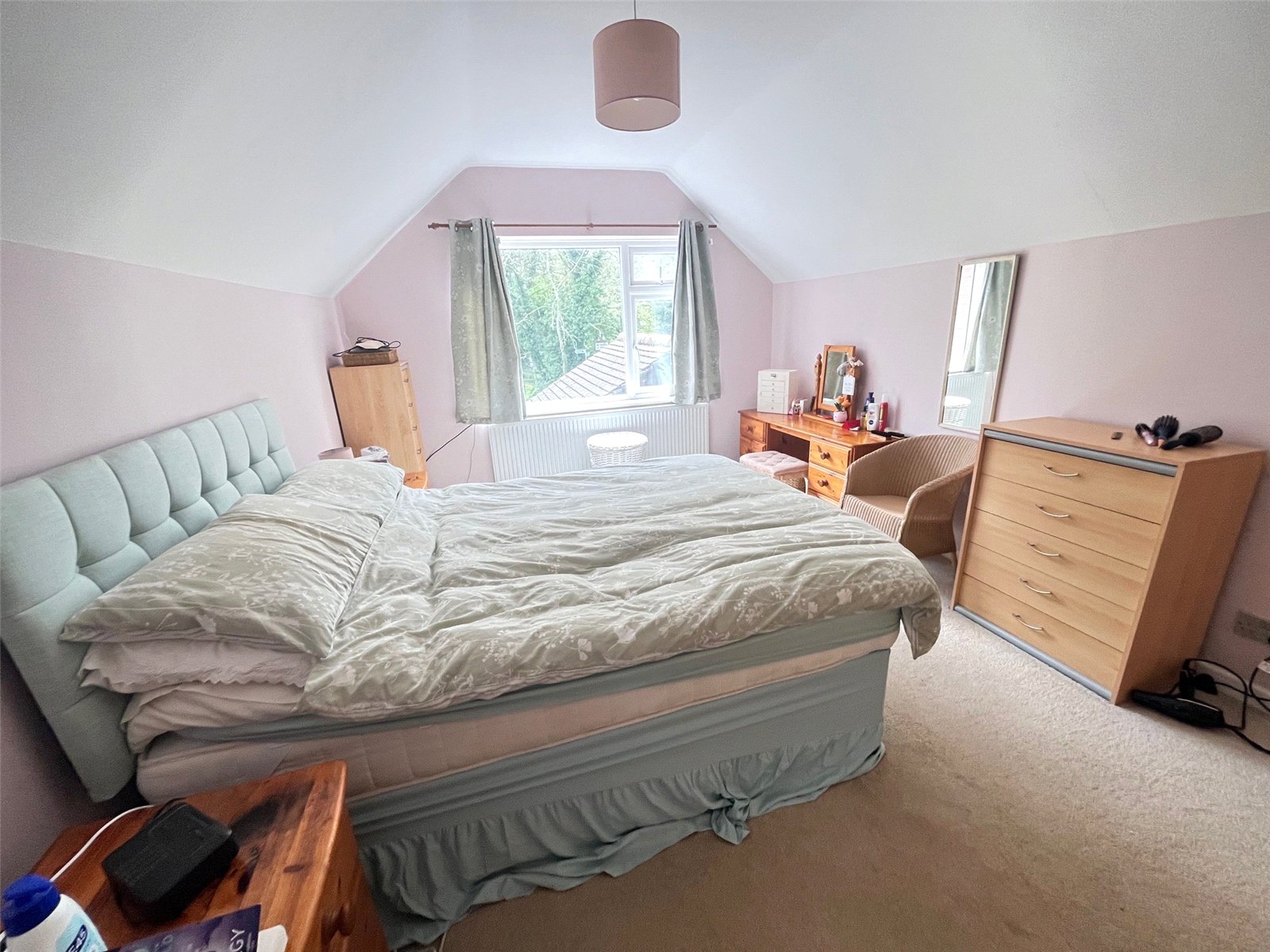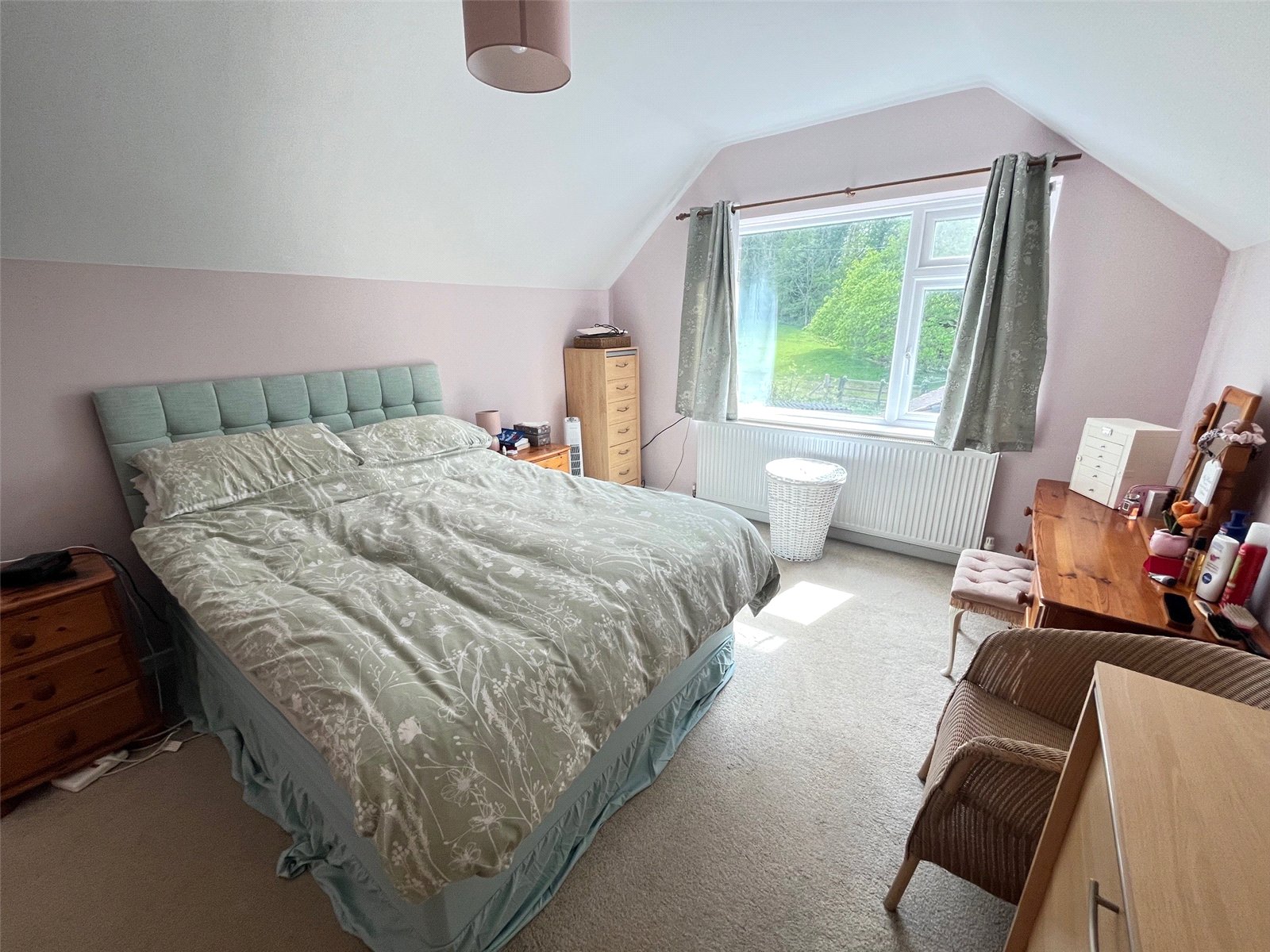 Bedroom One 15'4" x 10'10" (4.67m x 3.3m). Another spacious double bedroom with Upvc double glazed window to side aspect with views over garden and countryside beyond, radiator, built in wardrobe, access to loft, stairs to eaves
