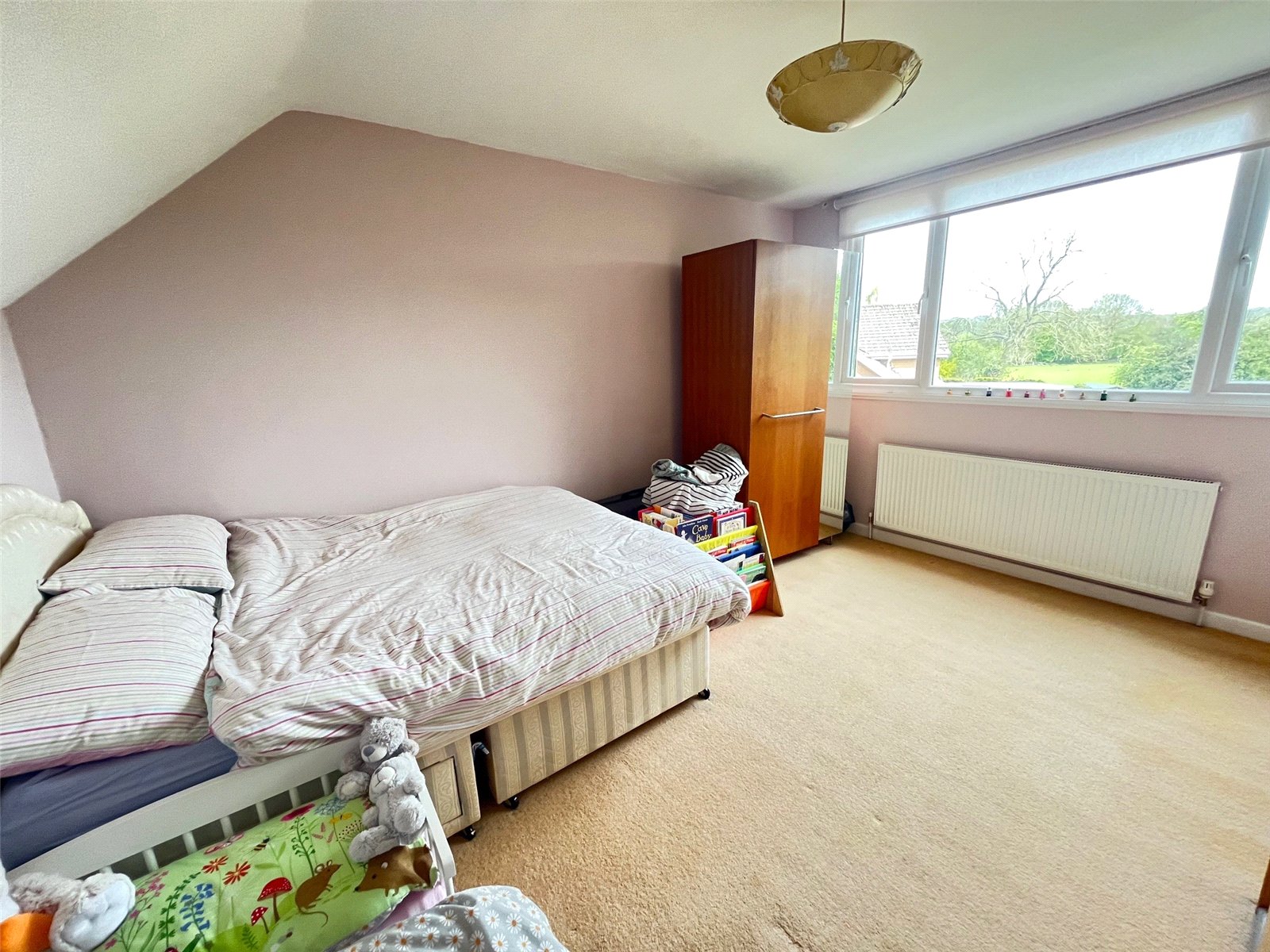 Bedroom Three 13'8" x 10'10" (4.17m x 3.3m). A versatile room currently used as bedroom three, built in wardrobe, radiator, Upvc double glazed window to rear aspect with views over the rear garden and countryside beyond