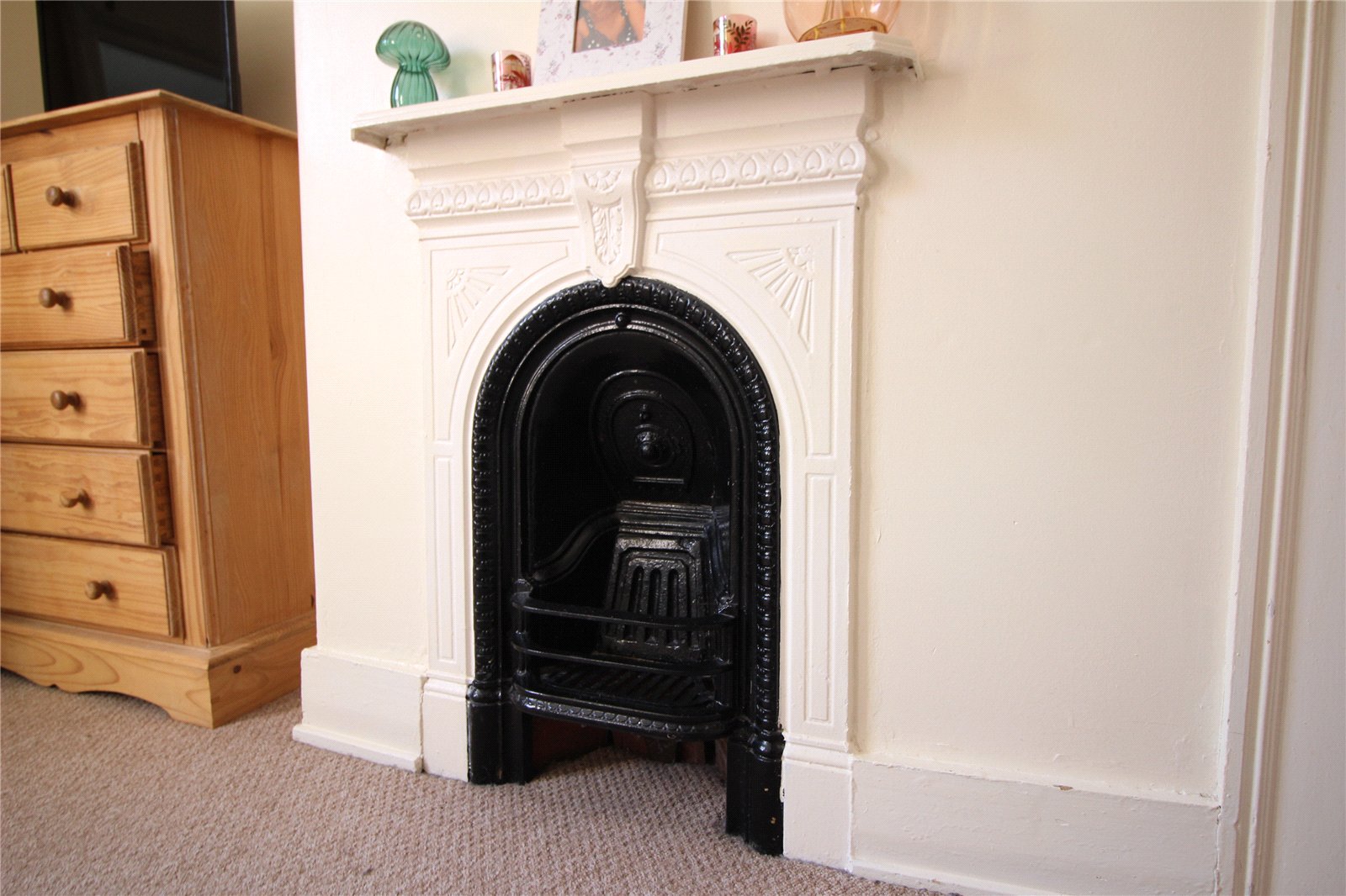 Bedroom Three 11'10" x 8'5" (3.6m x 2.57m). Upvc double glazed window to rear aspect, single panel radiator, ornate cast iron fireplace,