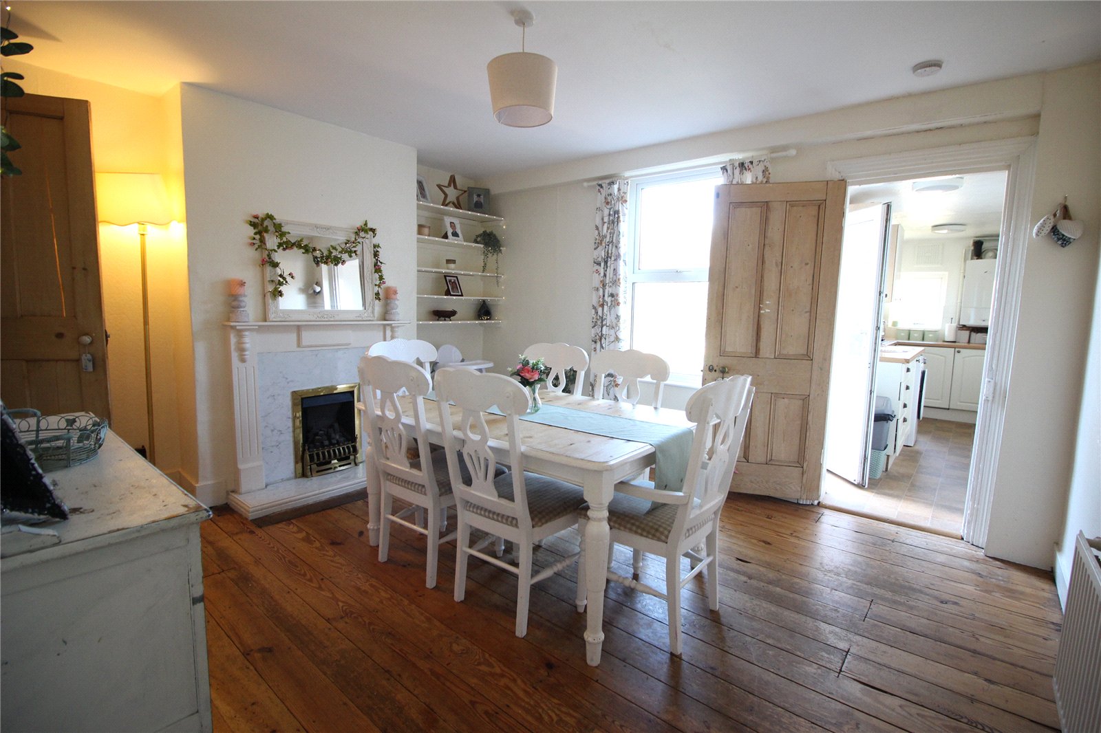 Dining Room 13'11" x 11'9" (4.24m x 3.58m). Under stairs storage cupboard, continuation of stripped floorboards, fireplace with flame effect gas fire, radiator, upvc double glazed door to rear aspect, pine door into kitchen.