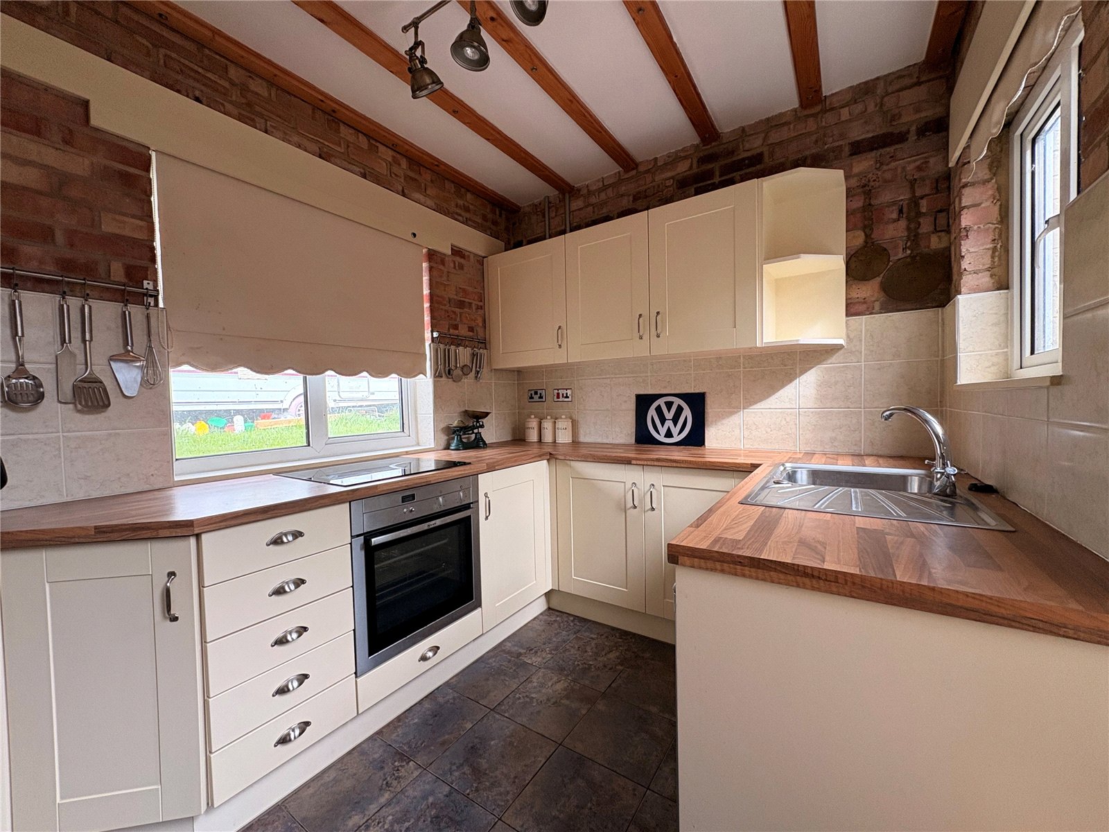 Kitchen 10' x 7'1" (3.05m x 2.16m). Fitted with a range of eye and base level cream fronted 'Shaker' style units with wood effect rolled edge work surfaces over and tiling above. The base units include a drawer stack whilst the wall units include an end decor display. Integrated 'Neff' electric oven with 'Neff' electric hob over, inset stainless steel single drainer sink unit with swan neck mixer tap over, space and plumbing for washing machine and slimline dishwasher, further space for under counter fridge, exposed brickwork to walls, dual aspect with Upvc double glazed windows to both sides, timber steps lead to a frosted Upvc double glazed door which gives access to the rear courtyard garden