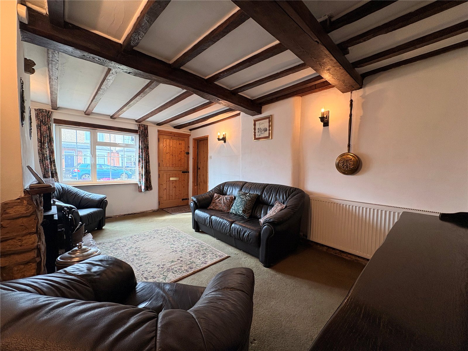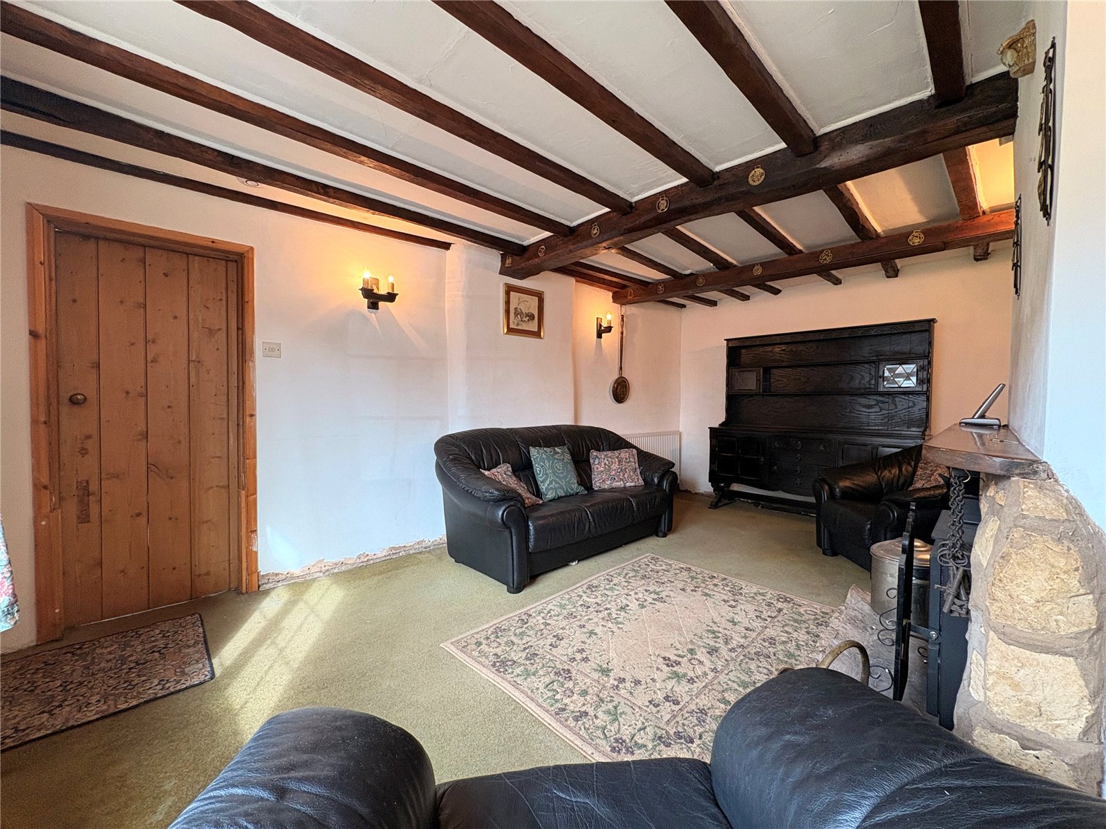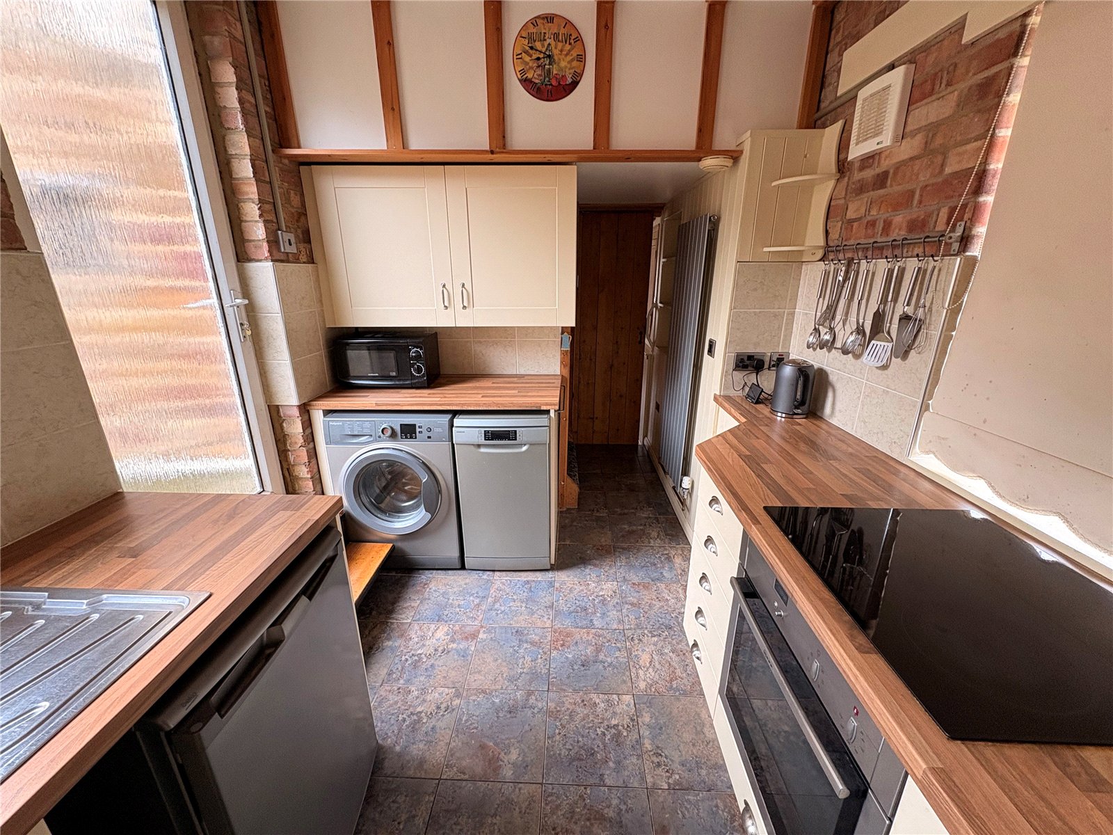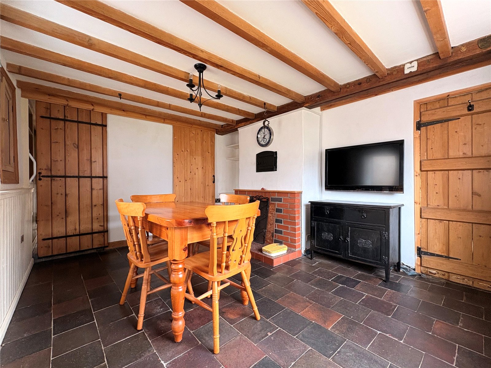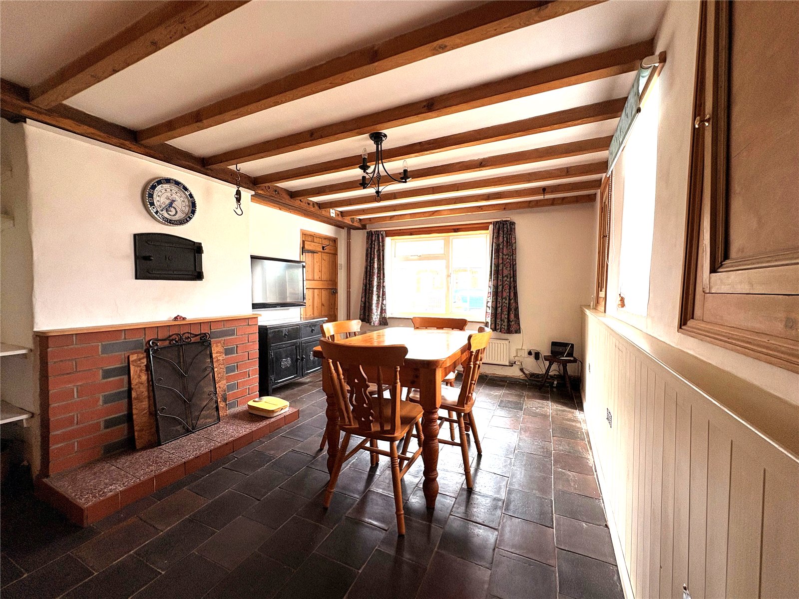 Dining Room 13'1" x 10'8" (4m x 3.25m). A fantastic sized second reception room which has a dual aspect and again with beams to the ceiling, chimney breast with brick built fireplace with tiled hearth and inset cast iron grate and wooden mantle, quarry tiled flooring, sliding timber door to under stairs storage cupboard with shelving, power and light and small frosted window to rear aspect. Frosted Upvc double glazed window to side aspect with deep sill and cupboards to either side one with inset shelving and the other which houses meters. Upvc double glazed window to front aspect with double panel radiator under, sliding timber door gives access to :-